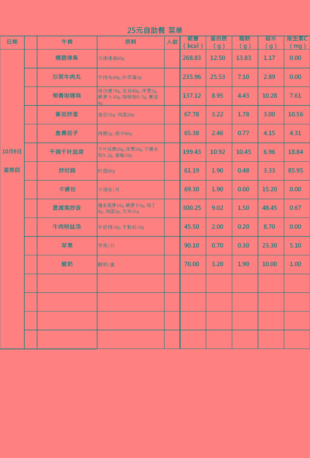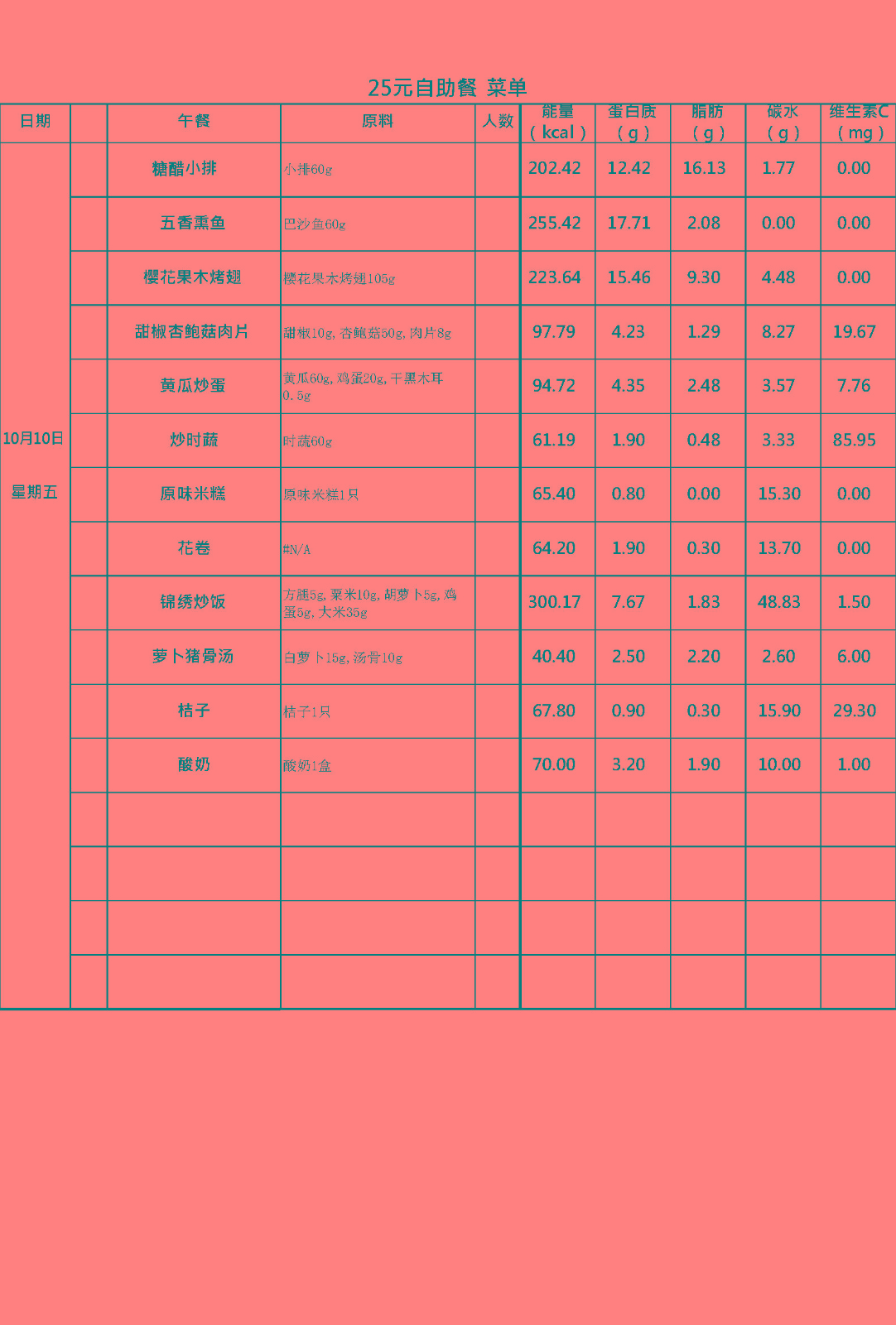每周菜谱