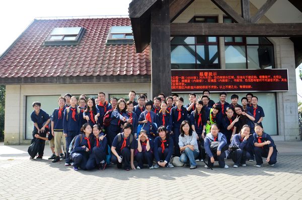 不知不觉车子已经抵达目的地——东方绿舟。暖暖的阳光,使每个人都欢笑满颜,栾老师赶紧号召大家拍张集体照,我们这个大家庭欢乐的笑容就在大门口被定格了。