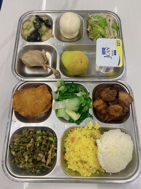 | 1月21日 | 咸菜肉丝毛豆 | 咸菜50g,上浆肉丝15g,毛豆肉15g | 124.22 | 11.88 | 5.31 | 11.41 | 11.88 |