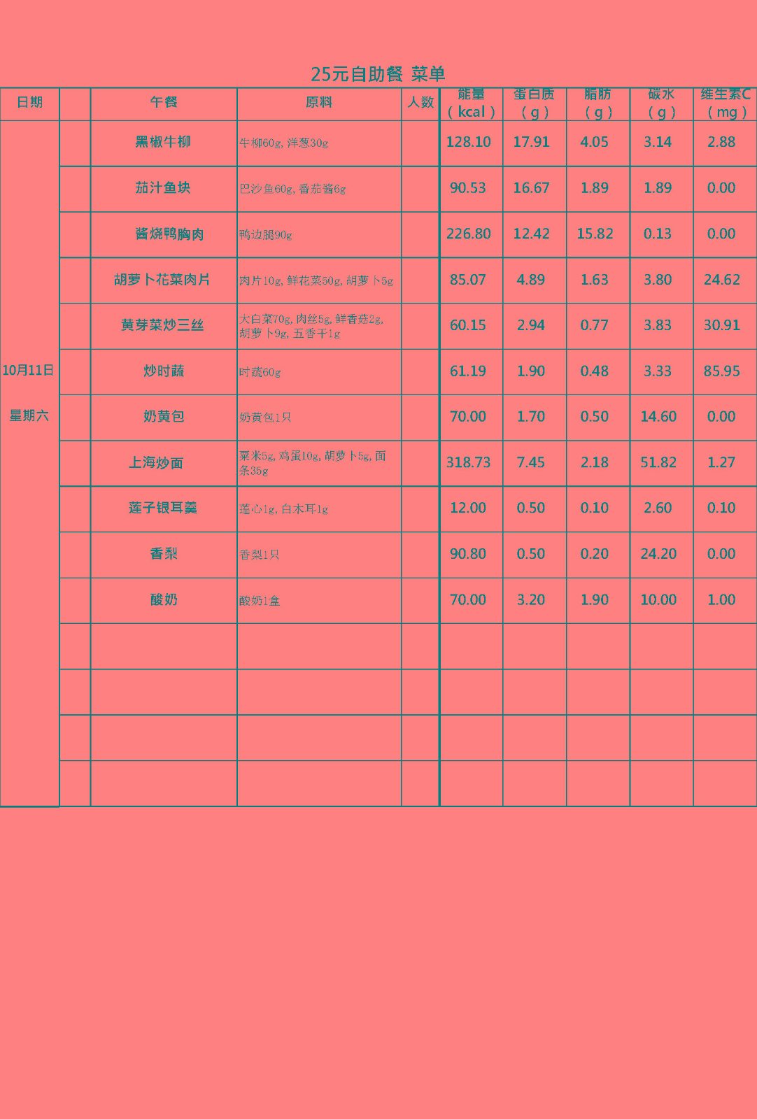 每周菜谱