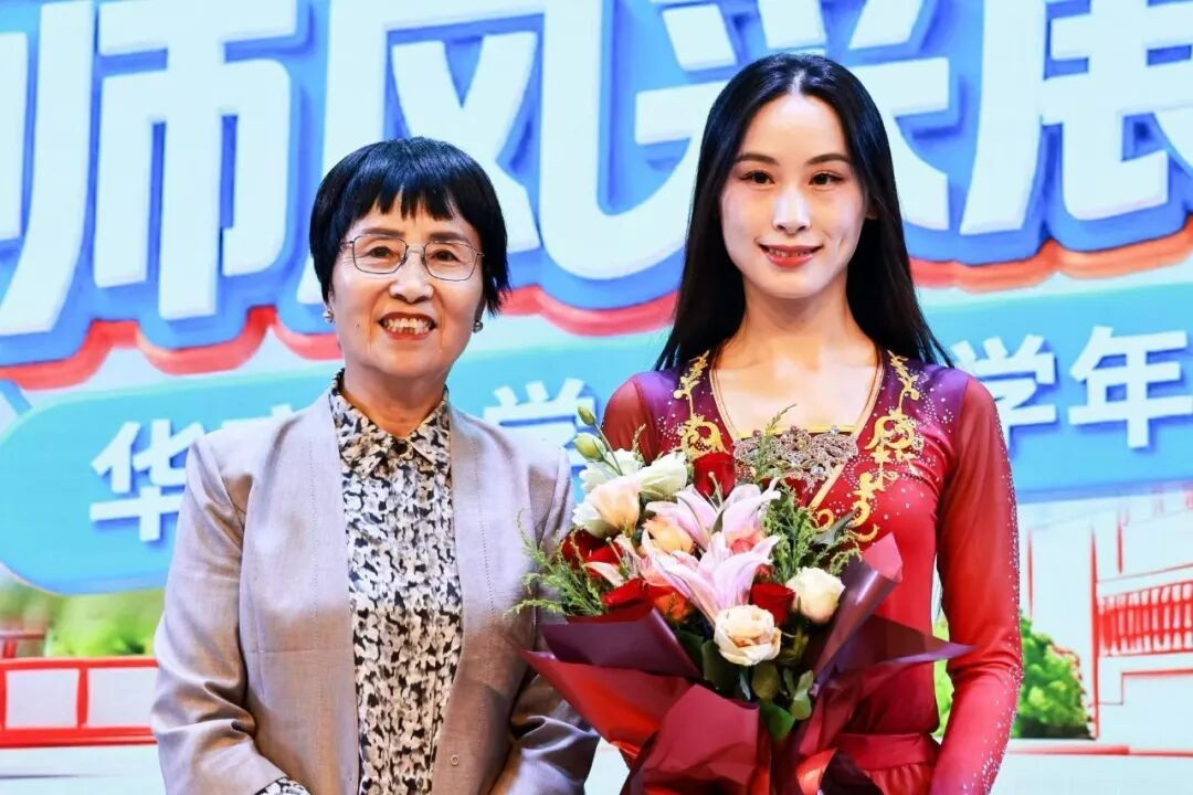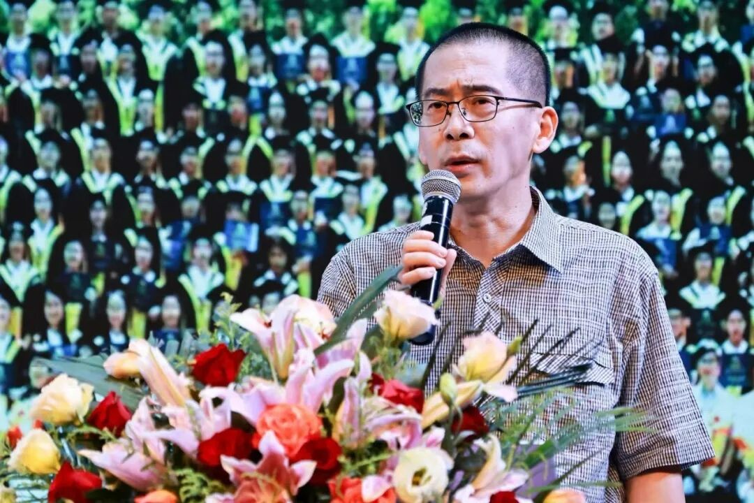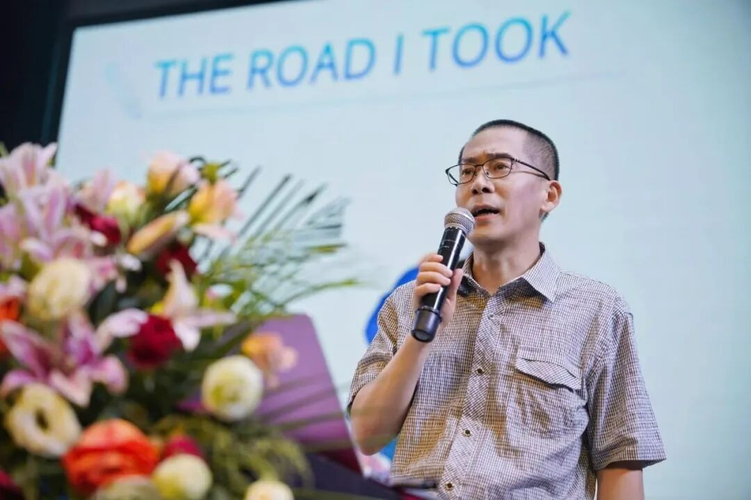 接下来登台的是英语组的乐健老师。从容坚定的乐老师以“路·歌·心”为主题,深情回顾了自己38年从教生涯中的选择、坚持与感恩。从1987年毅然选择回归母校担任英语教师,到2007年攻读硕士、2010年扎根华育中学,乐老师一次次坚定地走上教育之路,用实际行动诠释“选择所爱,爱所选择”。他以学生的成长为例,讲述陪伴与点亮的教育理念,也分享了2016年获“最受欢迎教师提名奖”的感动。乐老师感恩学生带来的光芒,感恩学校领导与同事的支持,更特别回忆起2013年病中校领导亲临探望的温暖时刻。他引用诗歌《未选择的路》和歌曲《You Raise Me Up》,强调教育是“一朵云推动另一朵云”的温柔力量,并寄语学生:以勇气选择、以热情坚持、以优雅感恩、以意志迎风雨,终将铸就非凡人生。