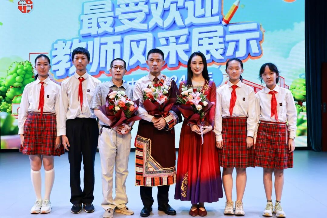 在三位老师精彩绝伦的风采展示后,来自华育中学33个班级的99位学生代表、家长代表及全体老师为自己心目中最受欢迎的教师投下神圣的一票。据选票统计,最终,罗家亮老师获得“华育中学2024学年最受欢迎教师”称号,乐健老师和朱咏琦老师荣获“2024学年最受欢迎教师提名奖”,李英校长对获奖的老师给予了热烈的祝贺并为获奖老师颁发证书。丹心铸师魂,大爱护芳菲。华育是一片孕育希望的沃土,这里承载着教育家唐盛昌先生高瞻远瞩的育人理念与李英校长务实创新的躬亲引领。这方沃土,滋养着一代代华育学子在创新与实践的道路上砥砺前行,成就卓越;也滋养着一批批华育教师以使命与热忱践行育人初心,用专业与担当书写新时代基础教育高质量发展的“卓越篇章”,为培养堪当民族复兴大任的时代新人持续奋斗。