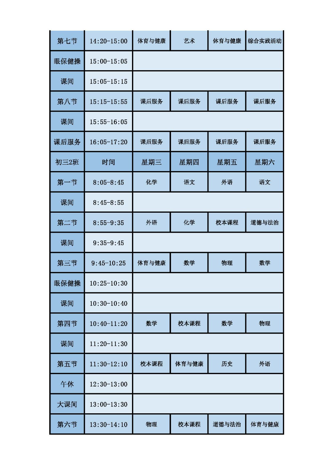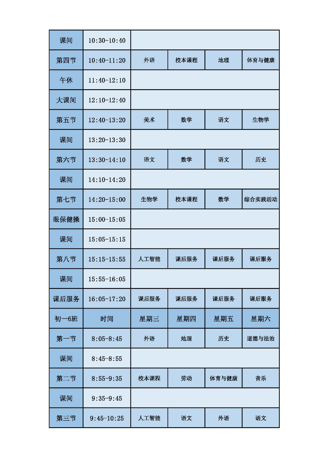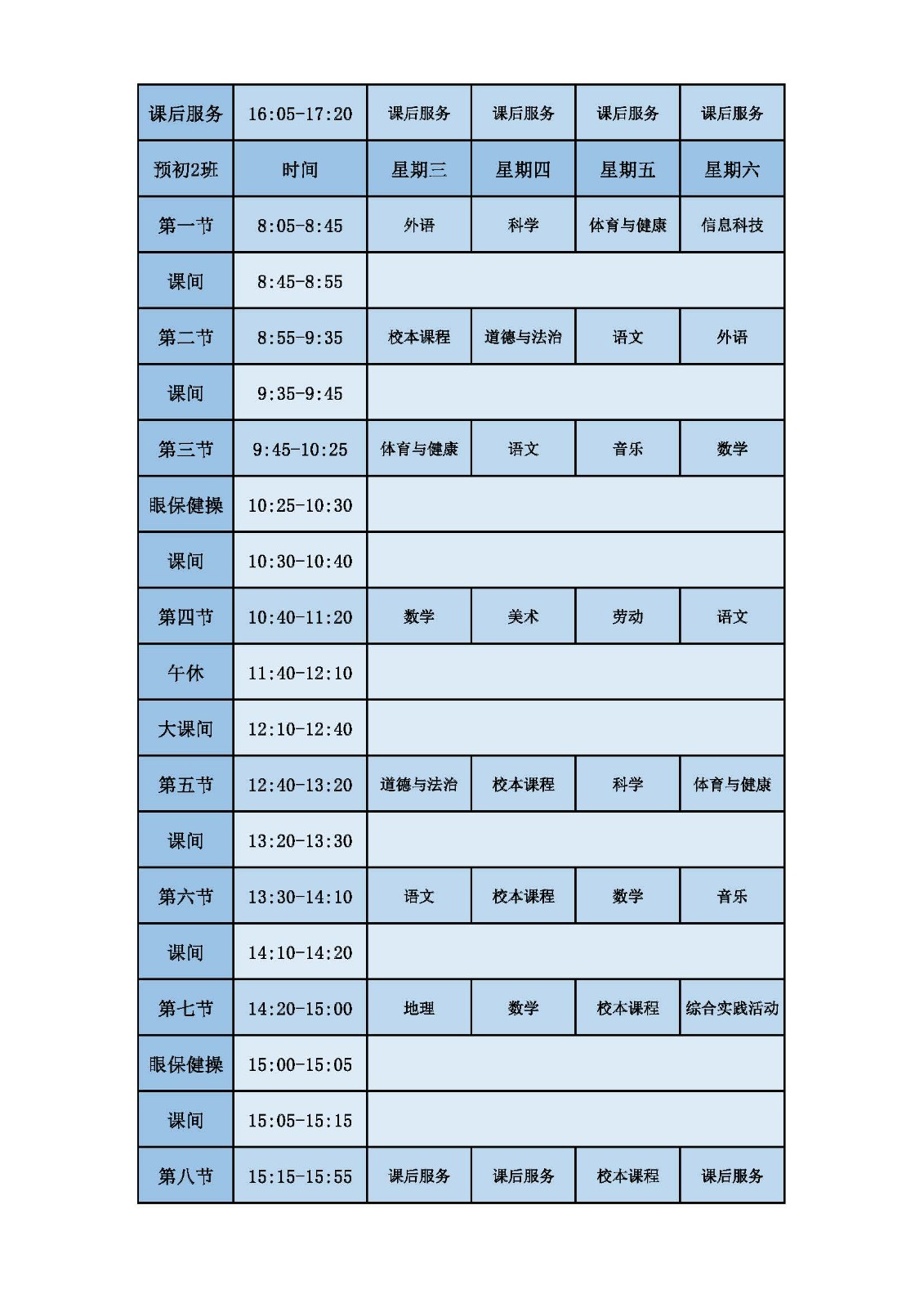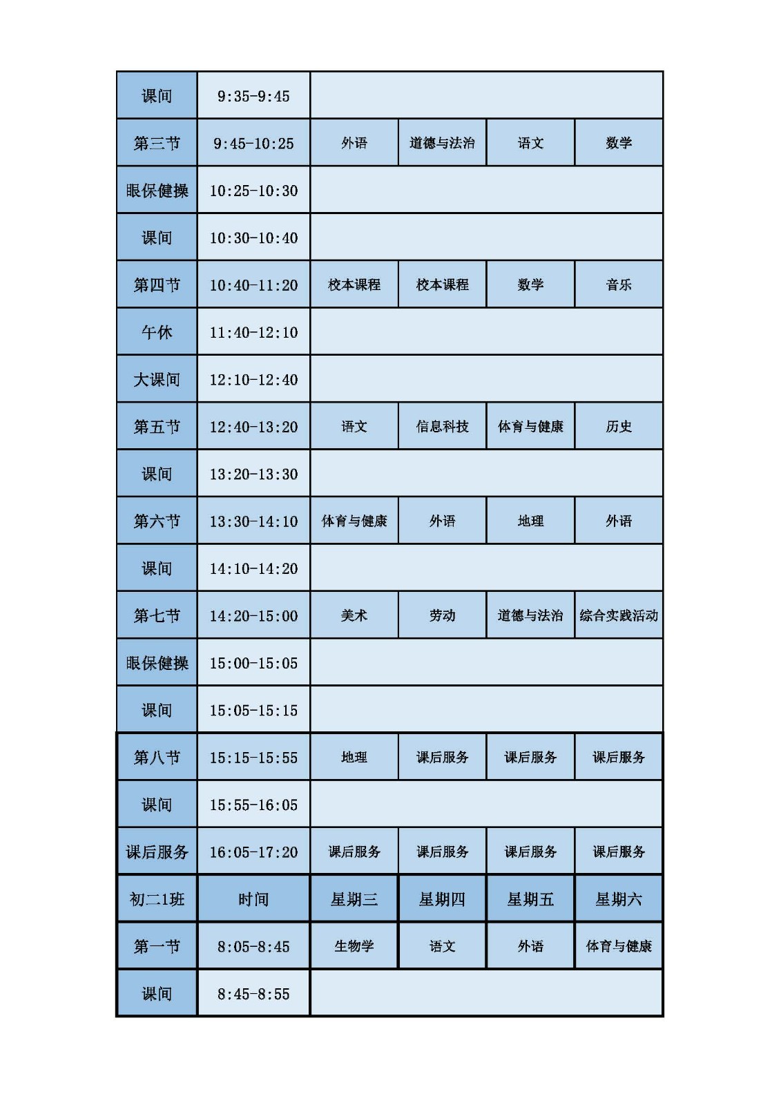 2025学年第二学期第十周课表
