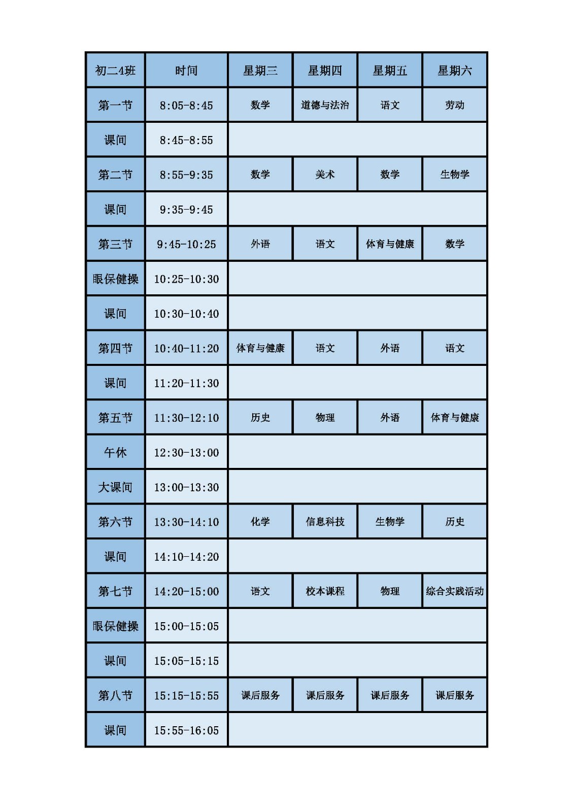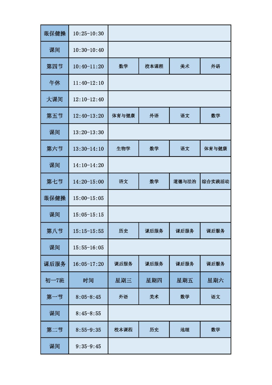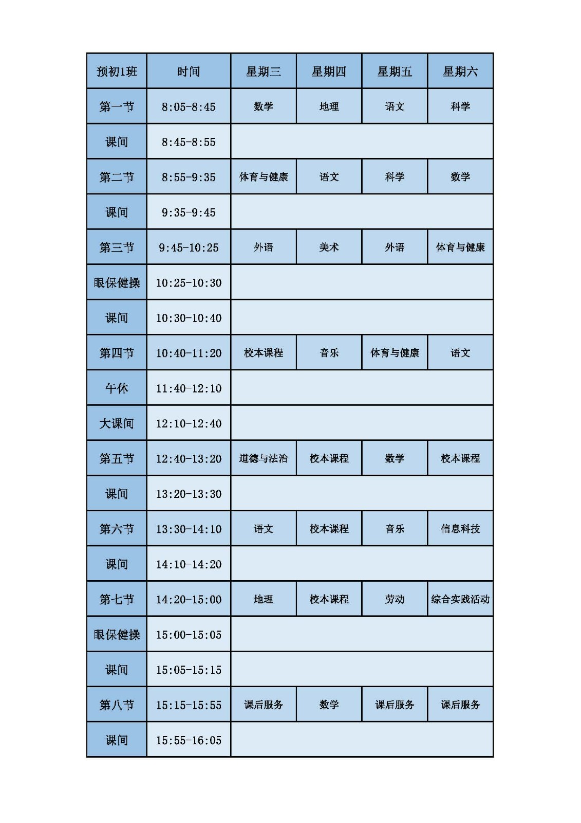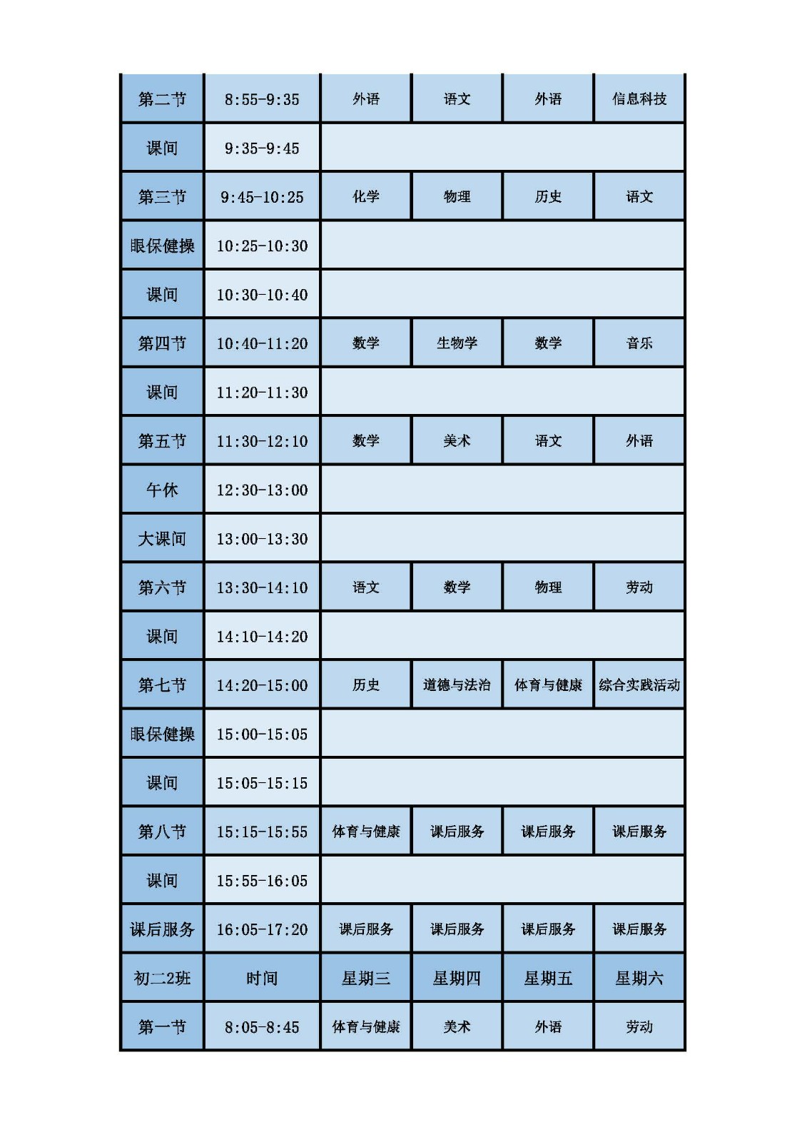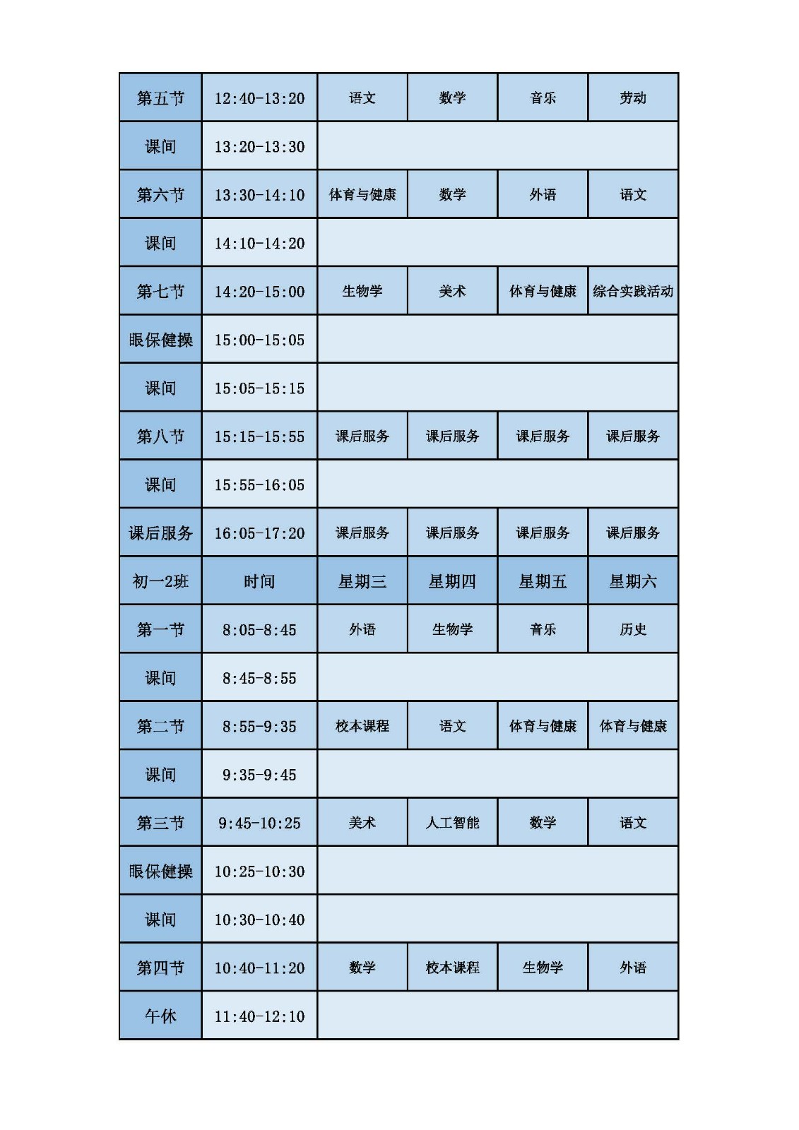 2025学年第二学期第十周课表