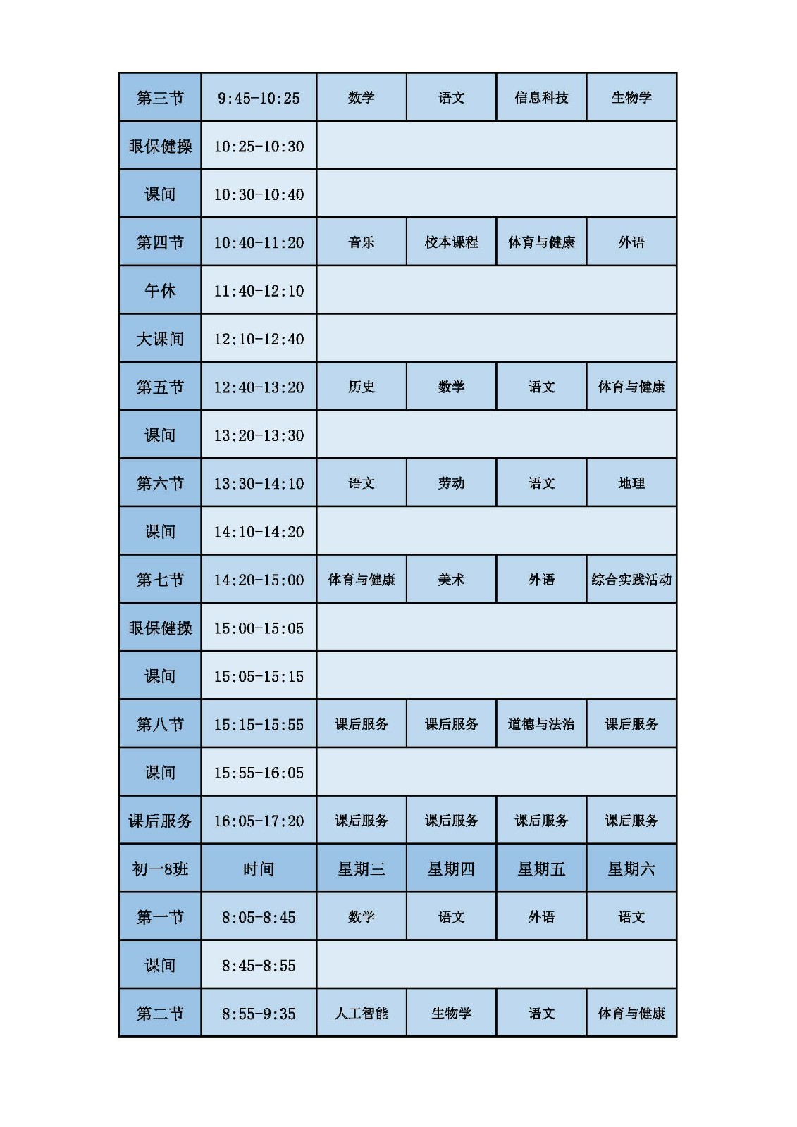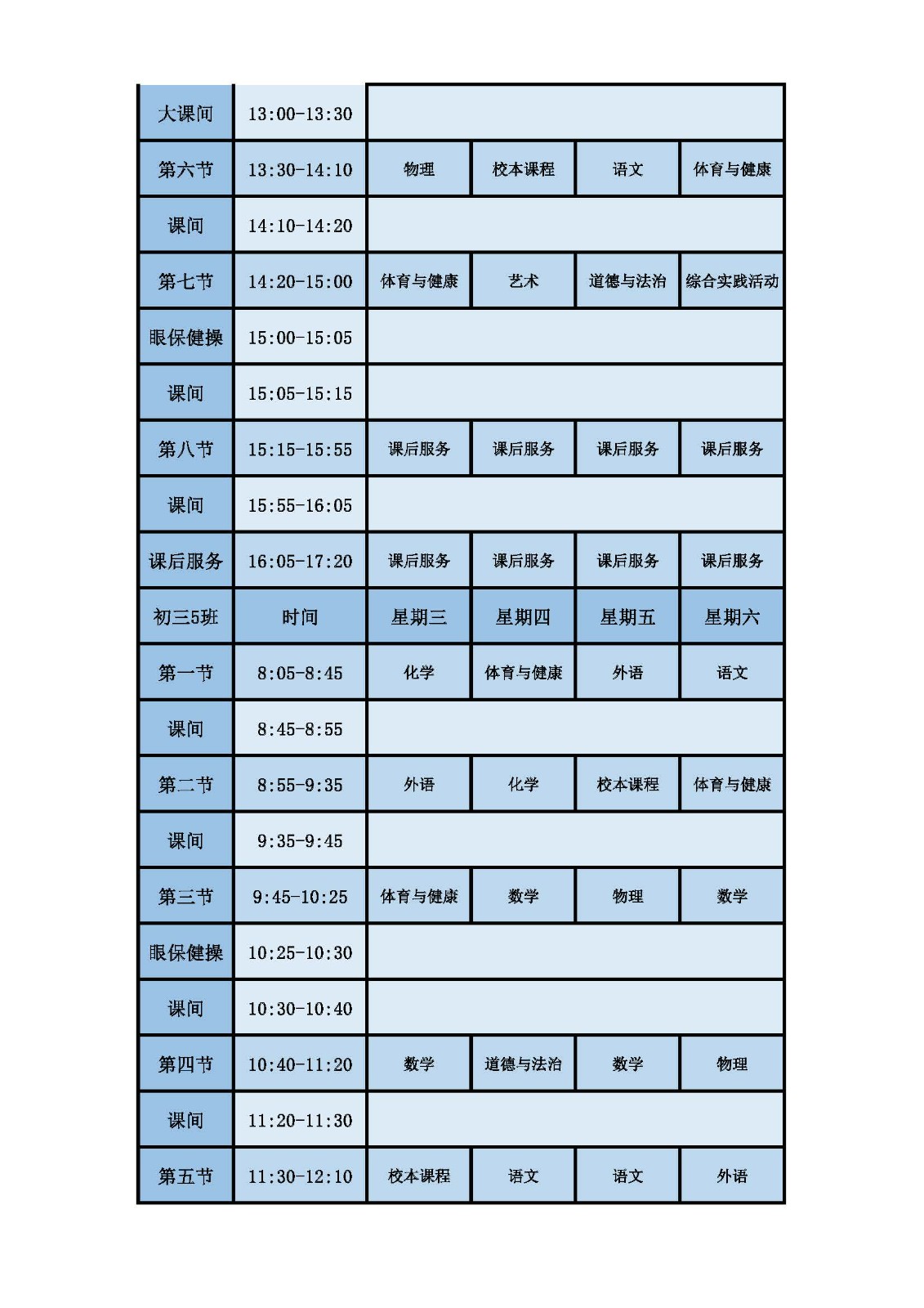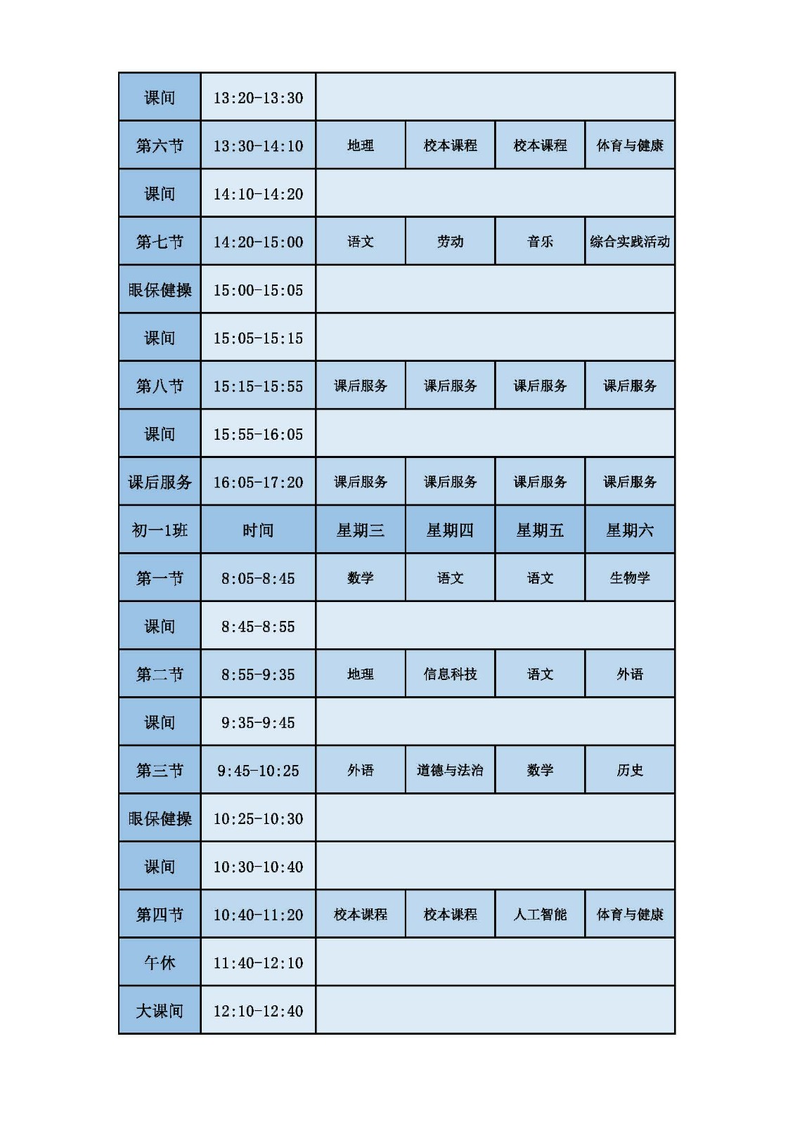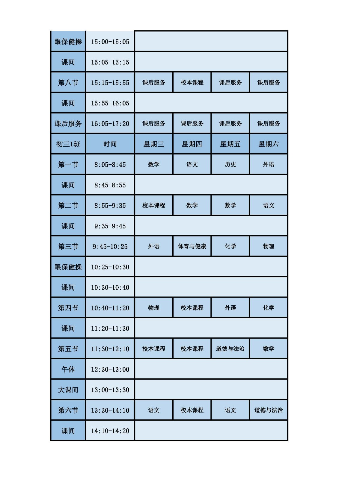 2025学年第二学期第十周课表