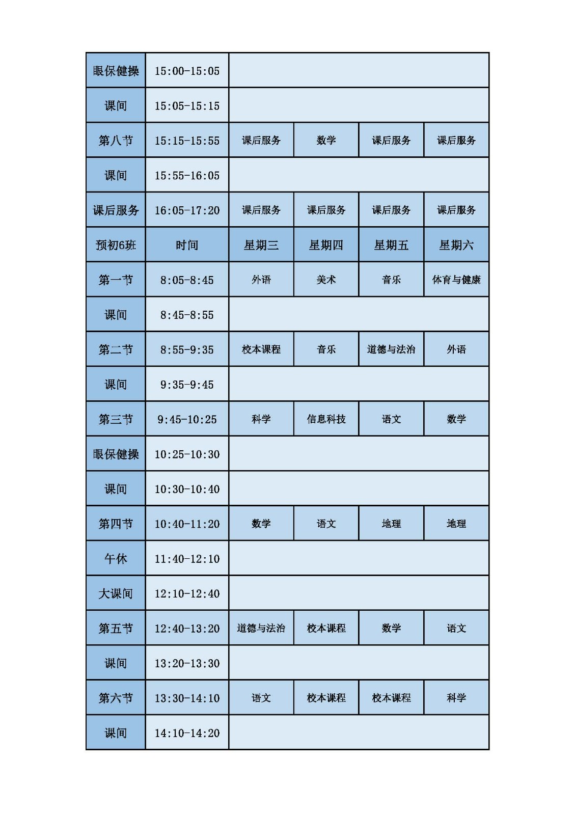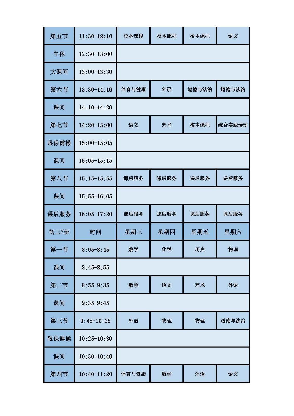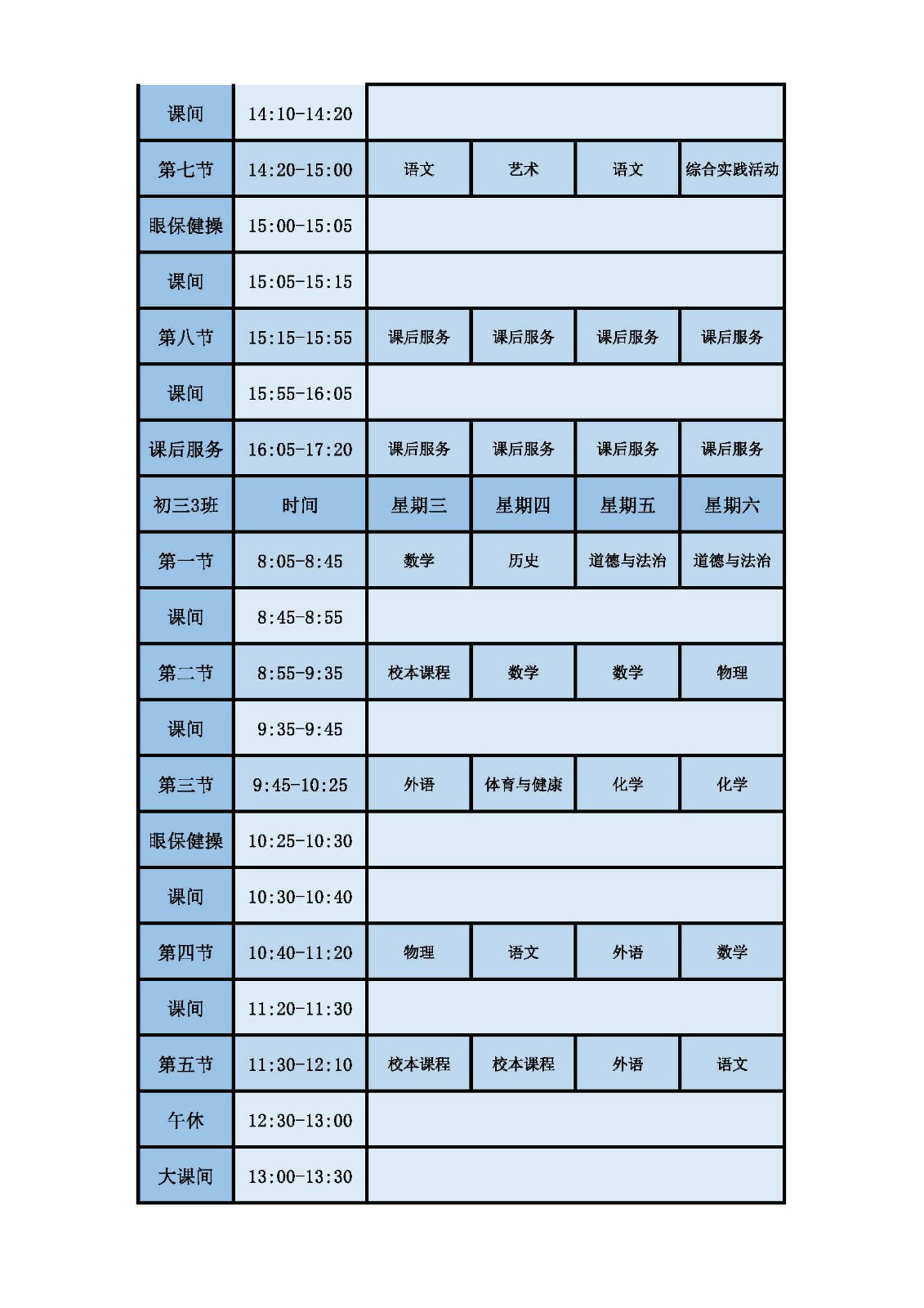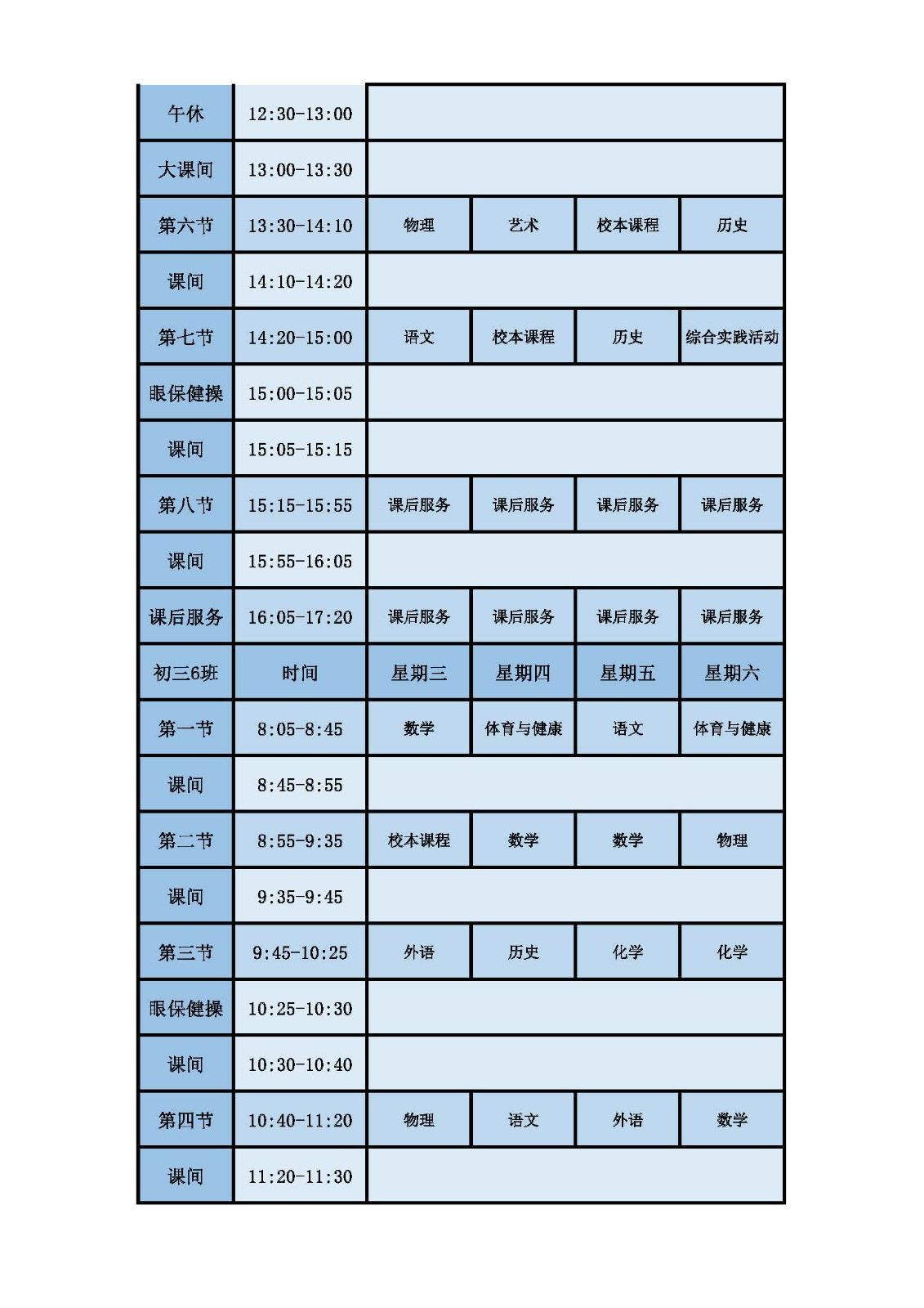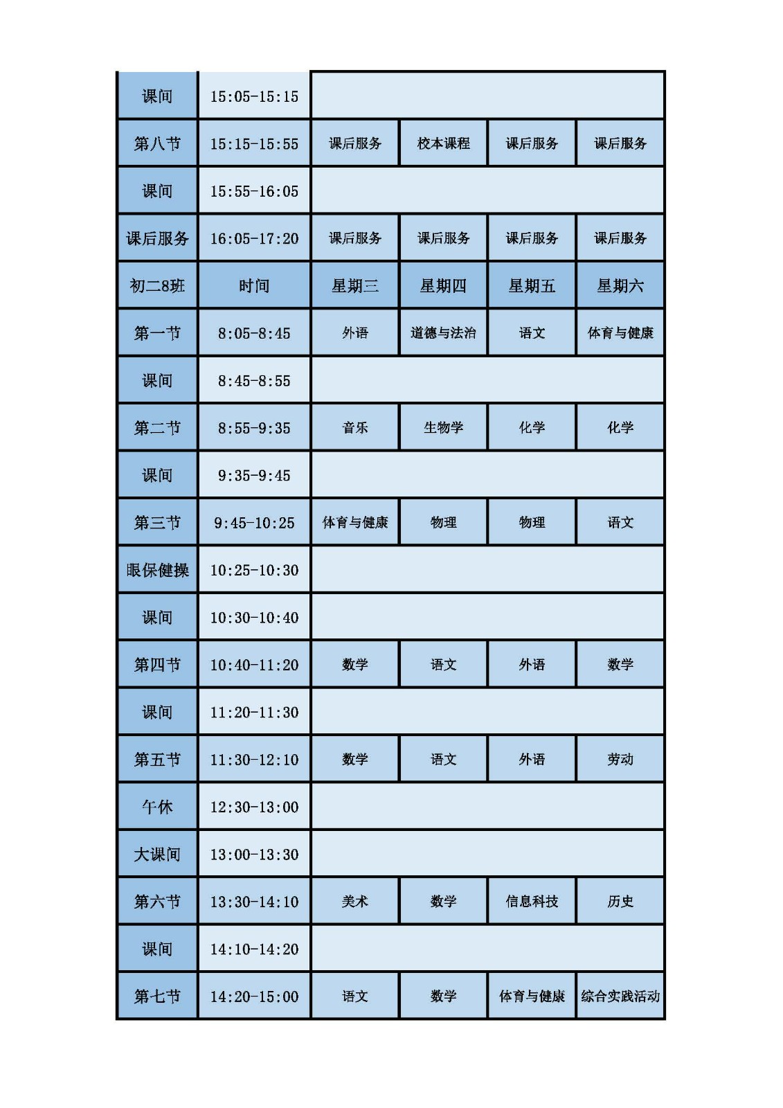 2025学年第二学期第十周课表