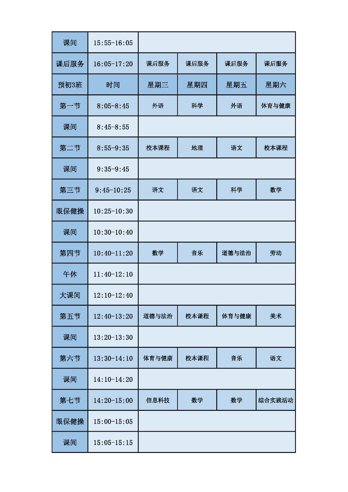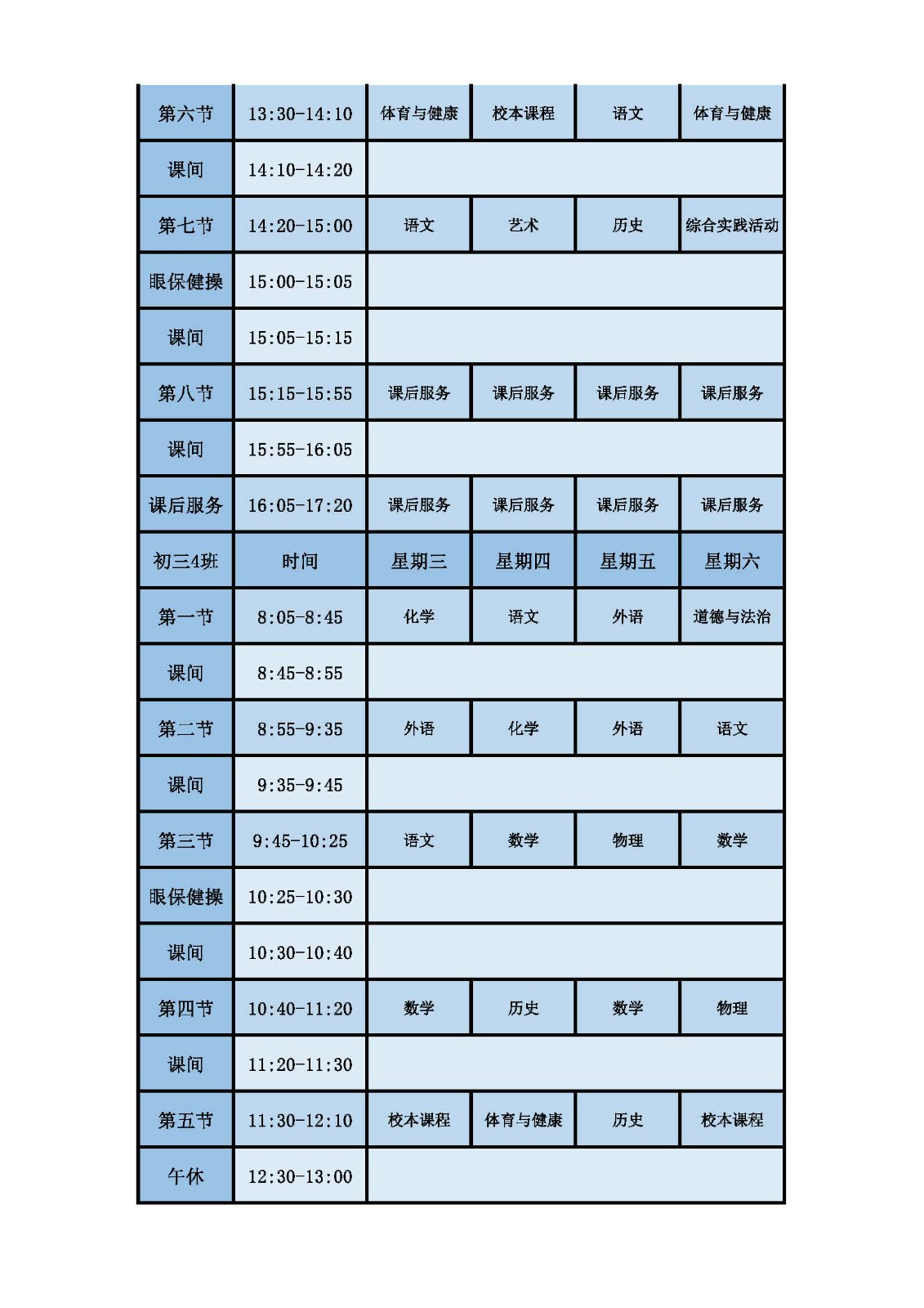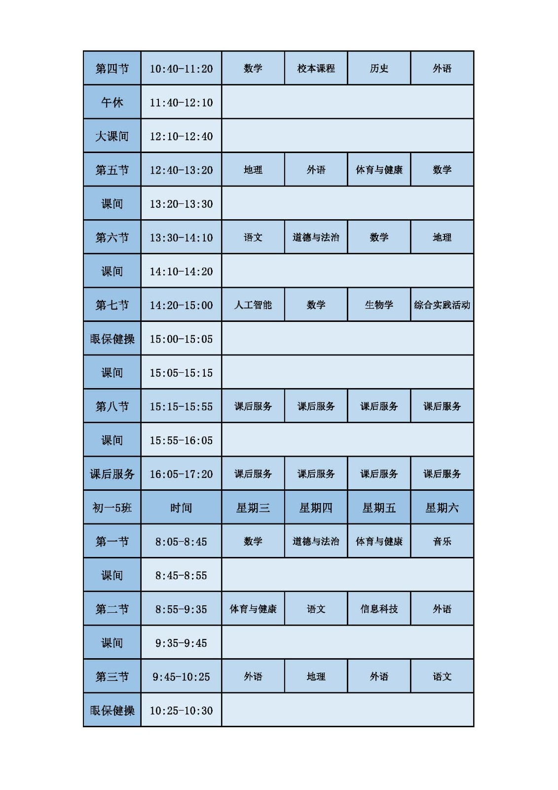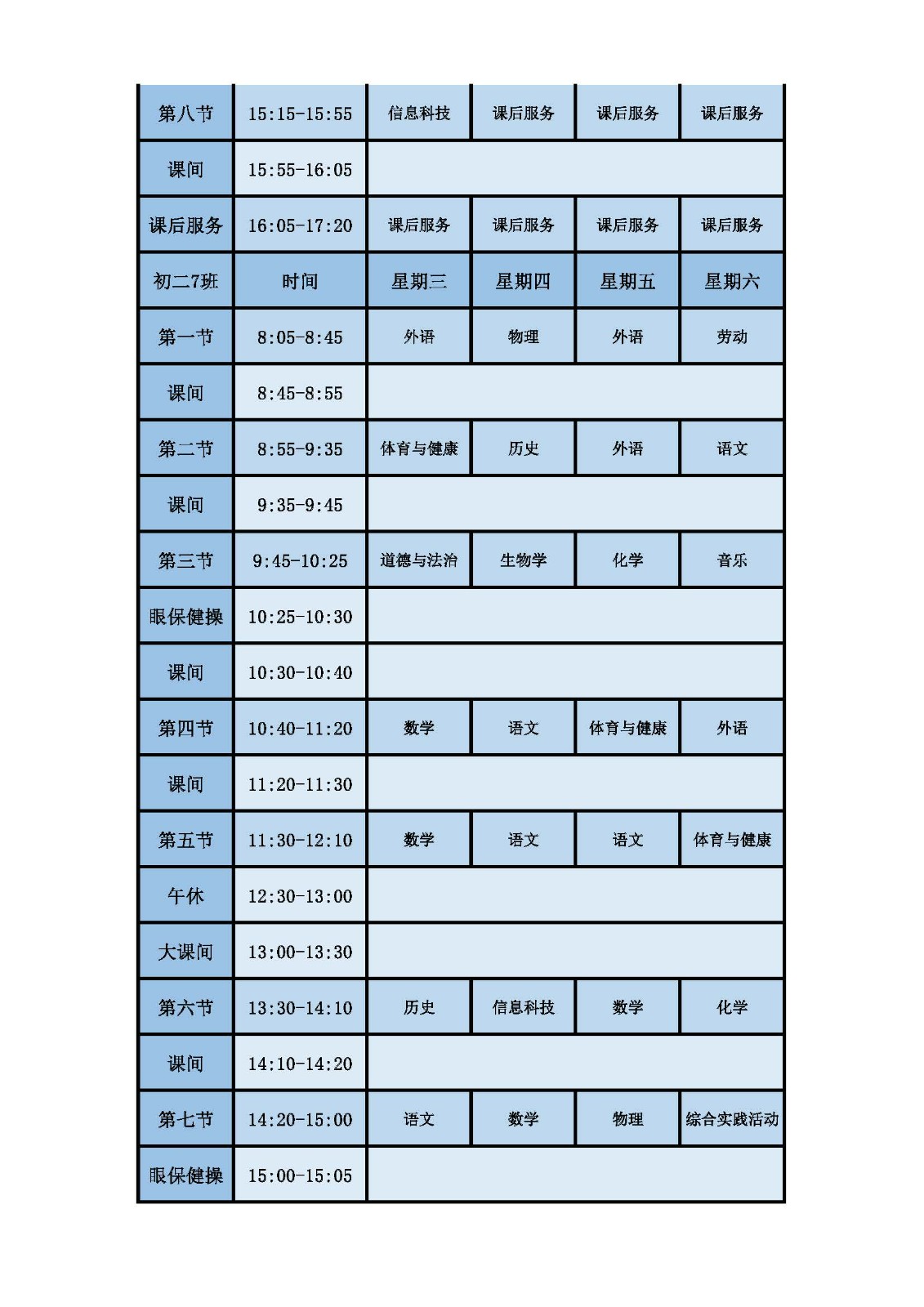 2025学年第二学期第十周课表