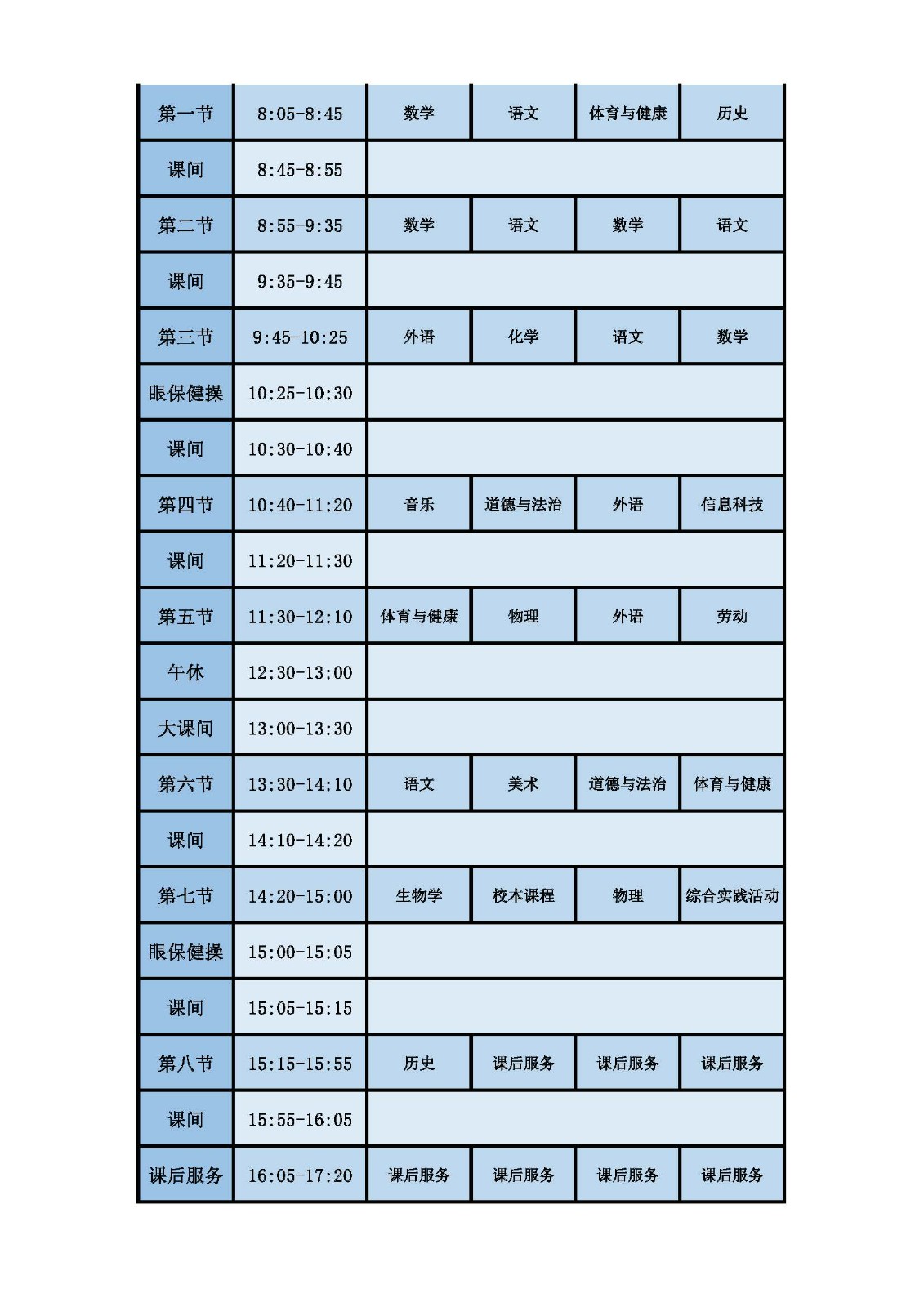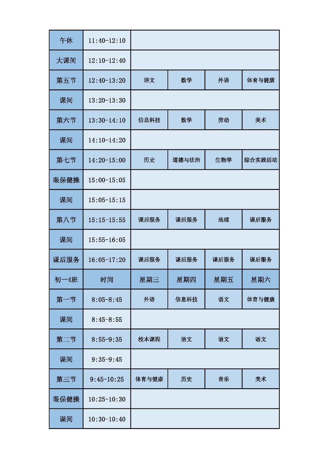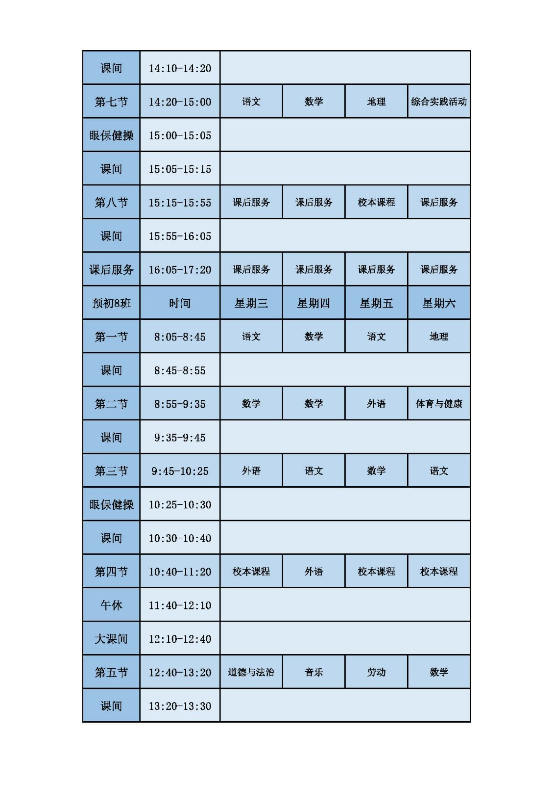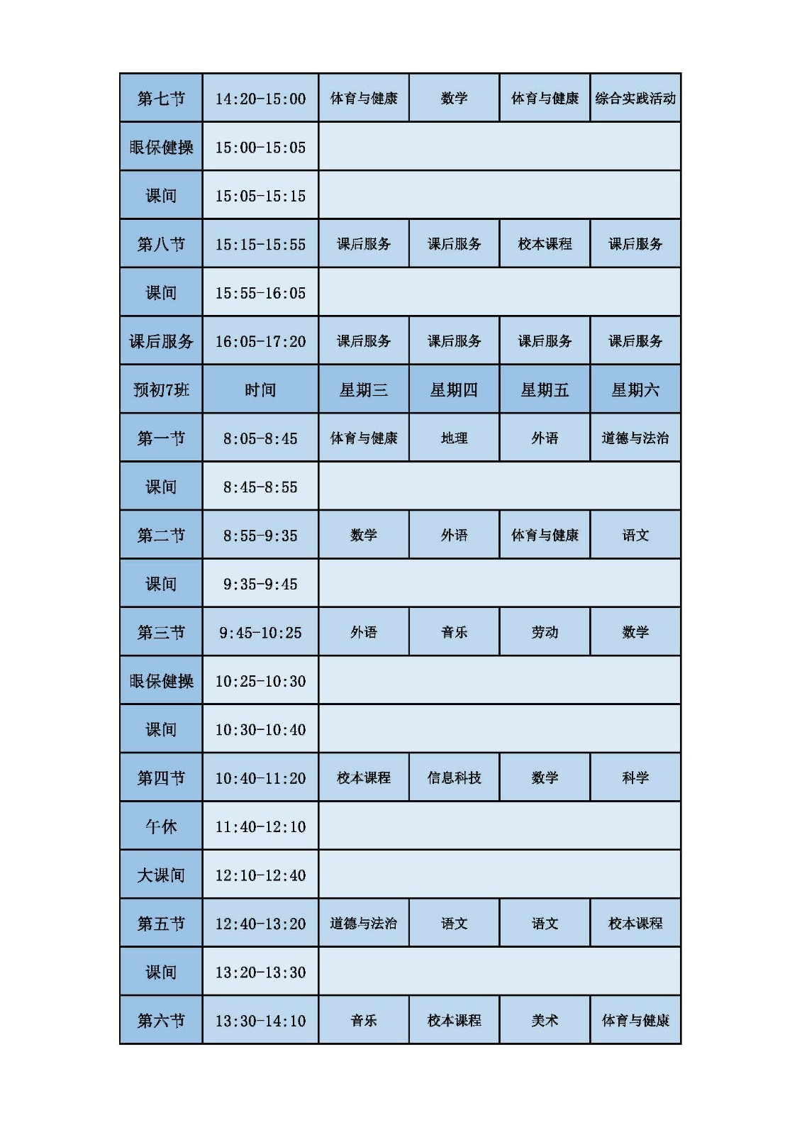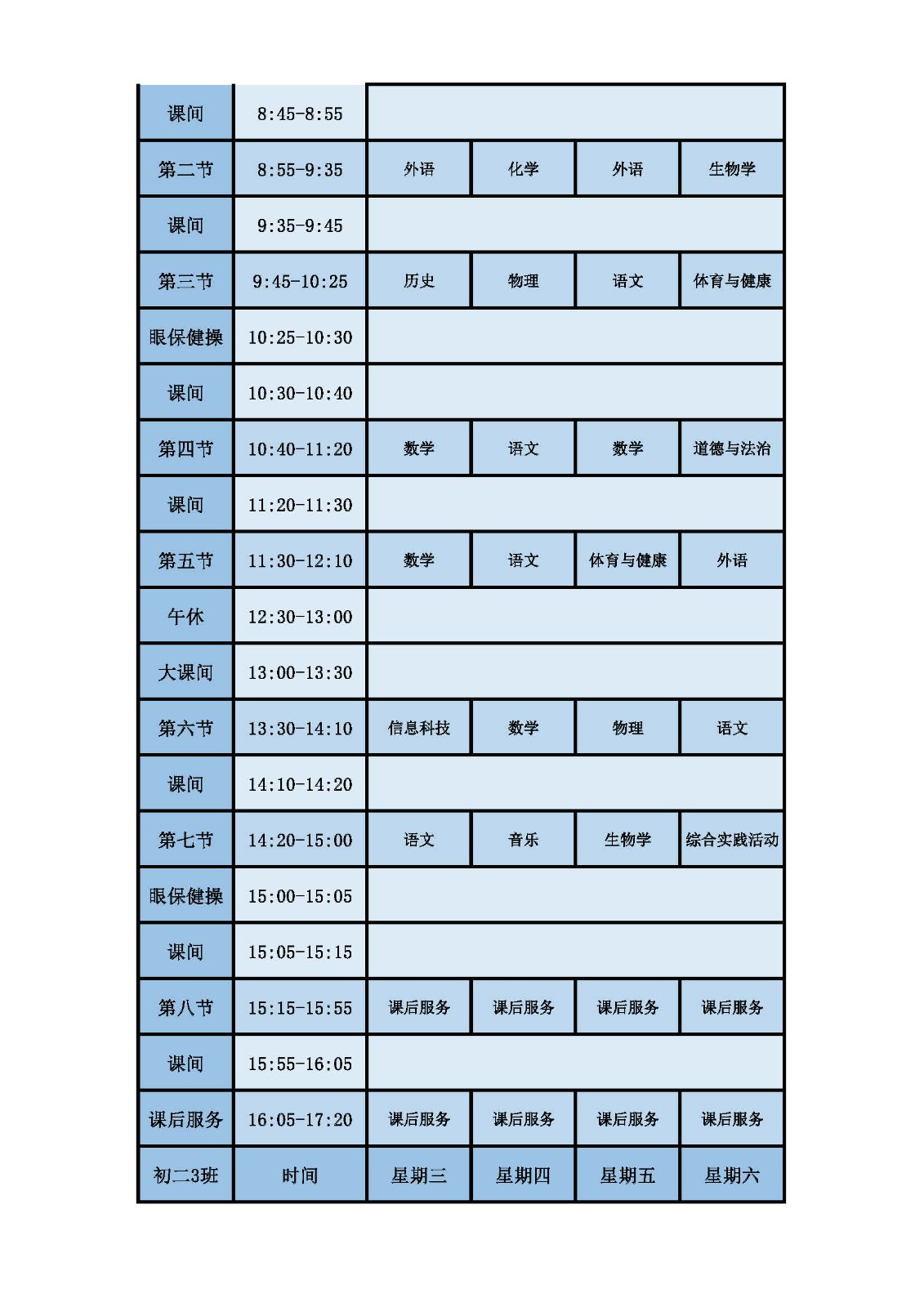 2025学年第二学期第十周课表