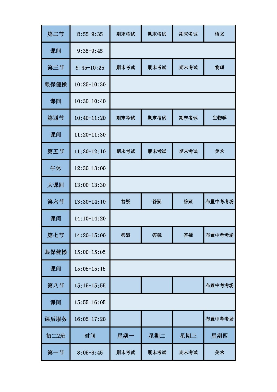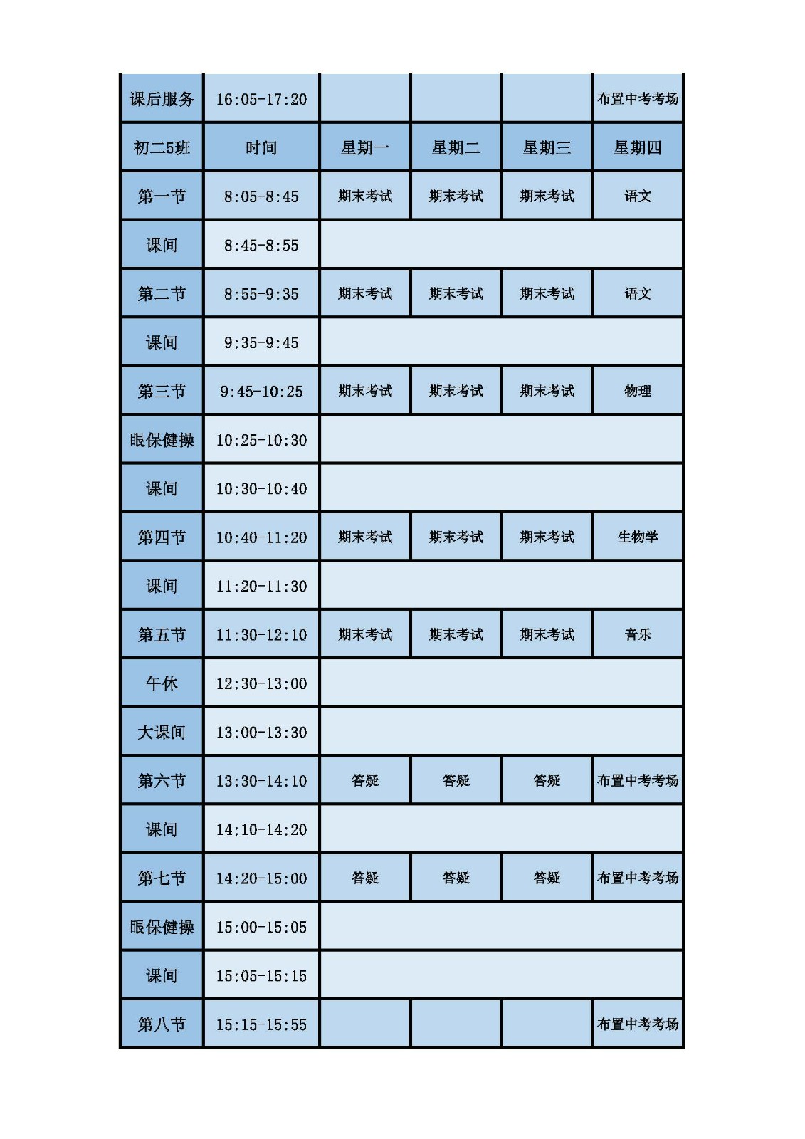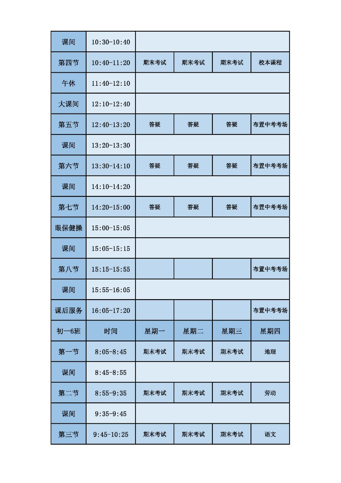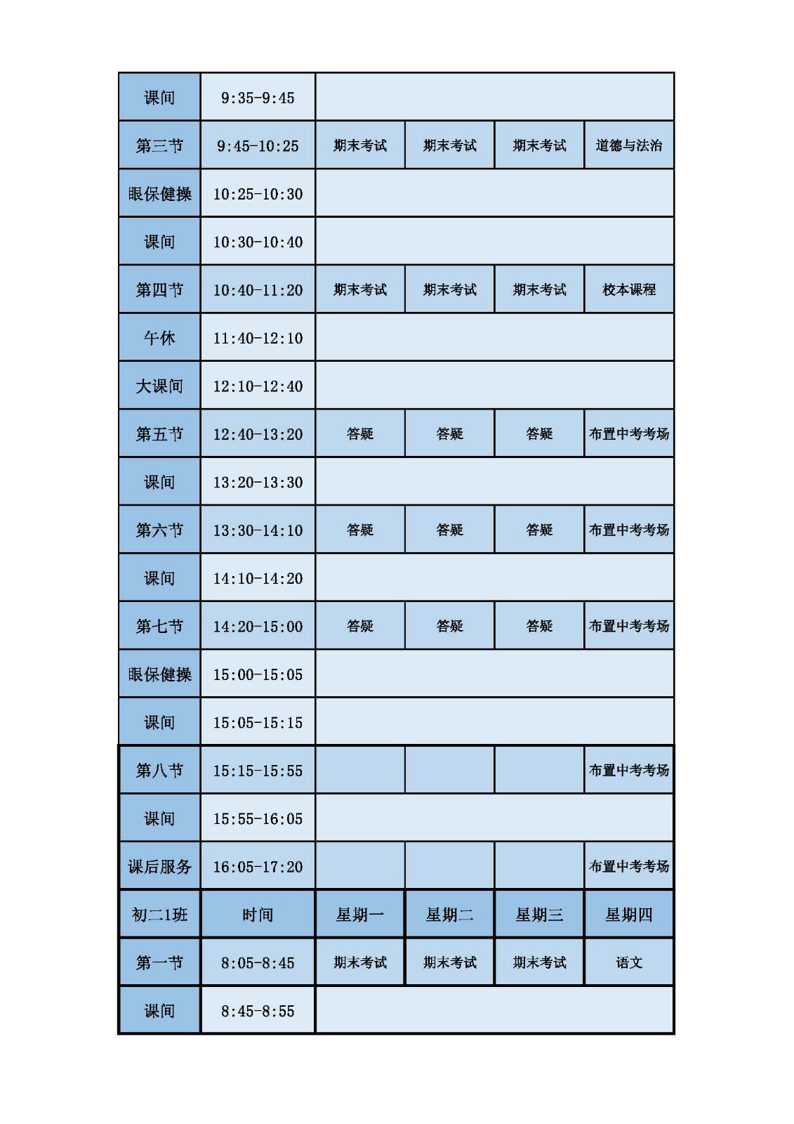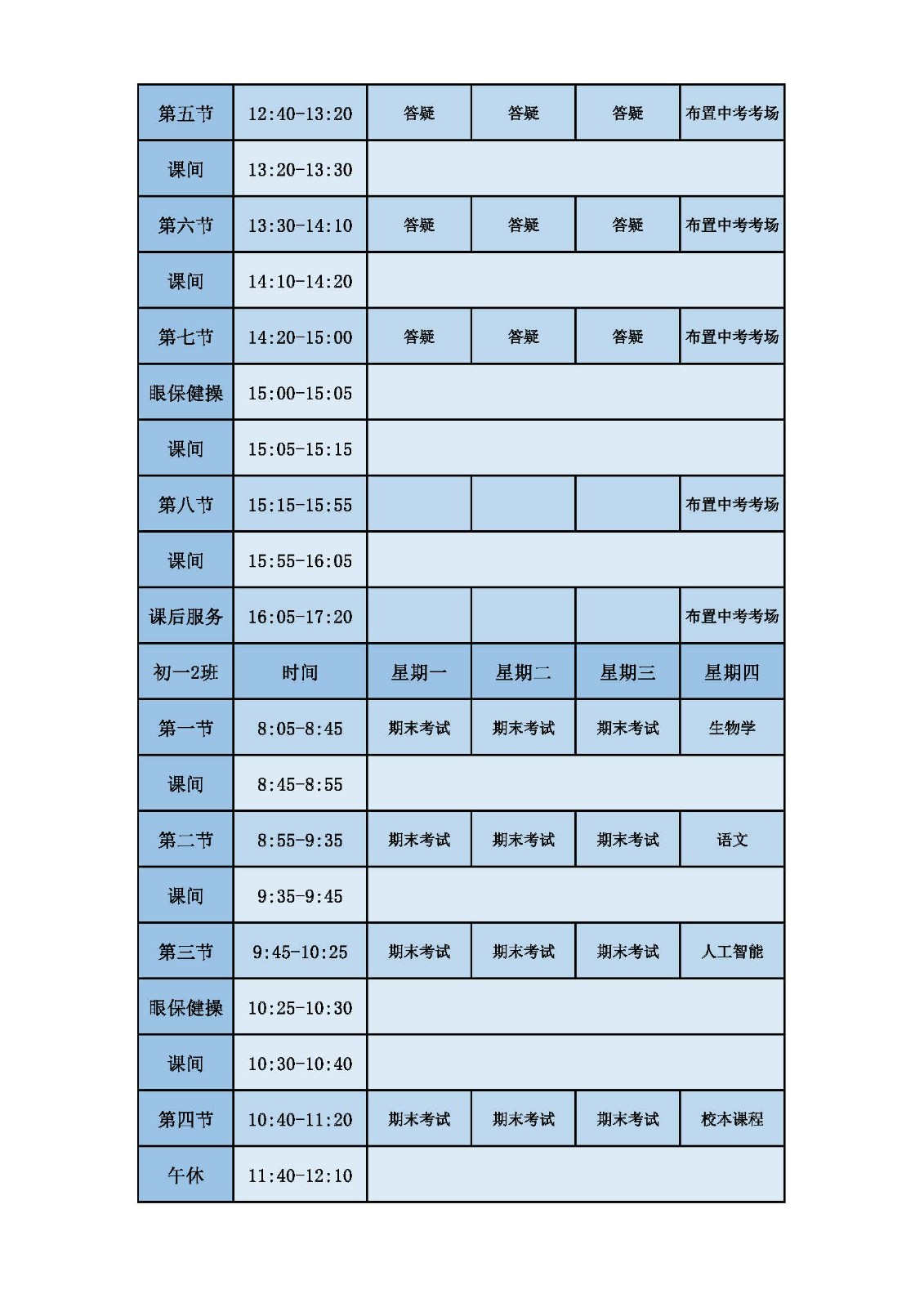 2025学年第二学期第十六周课表