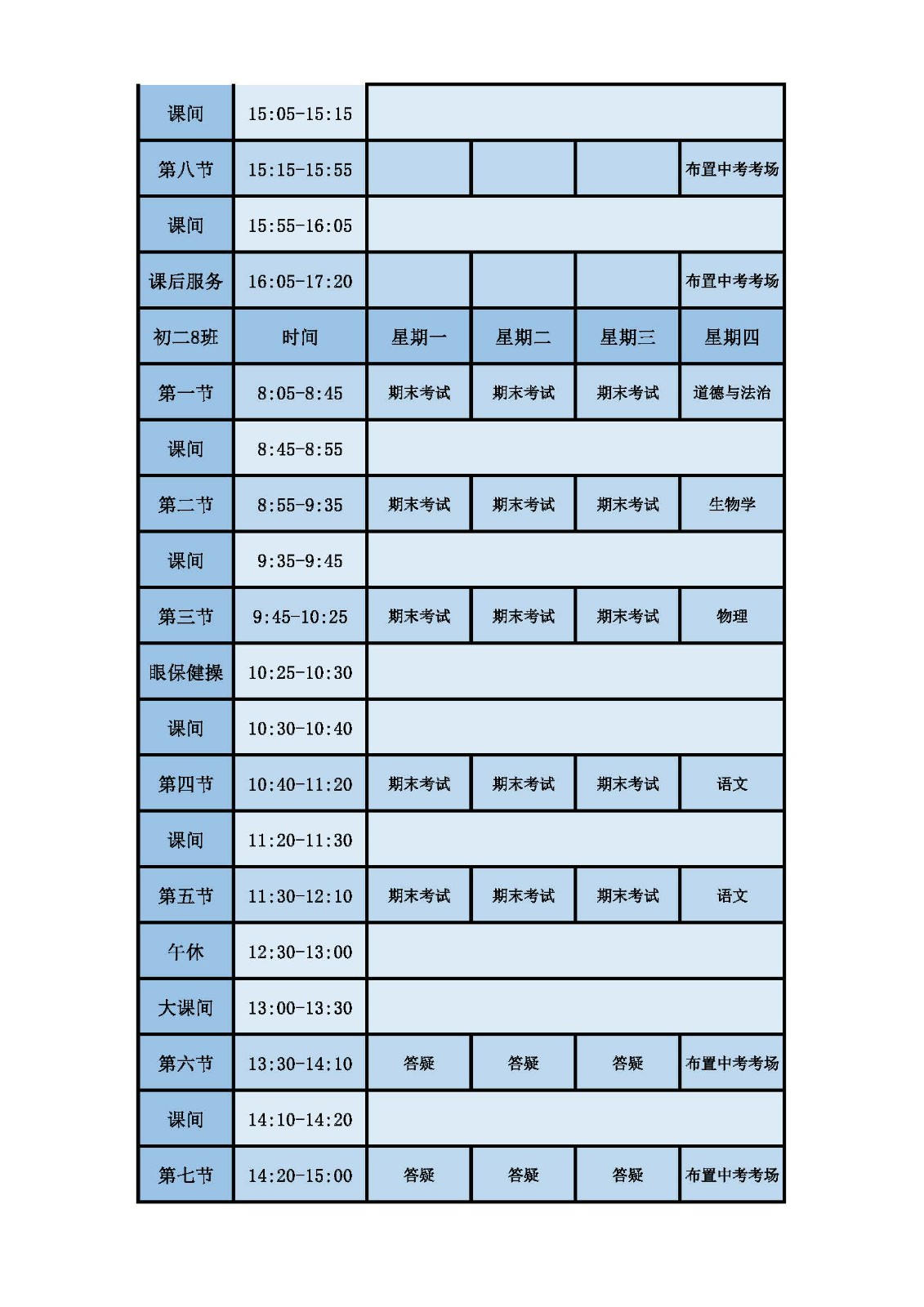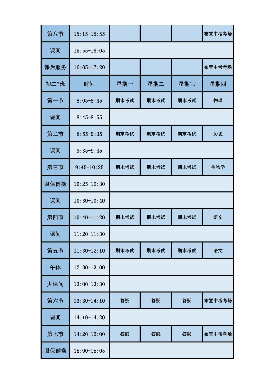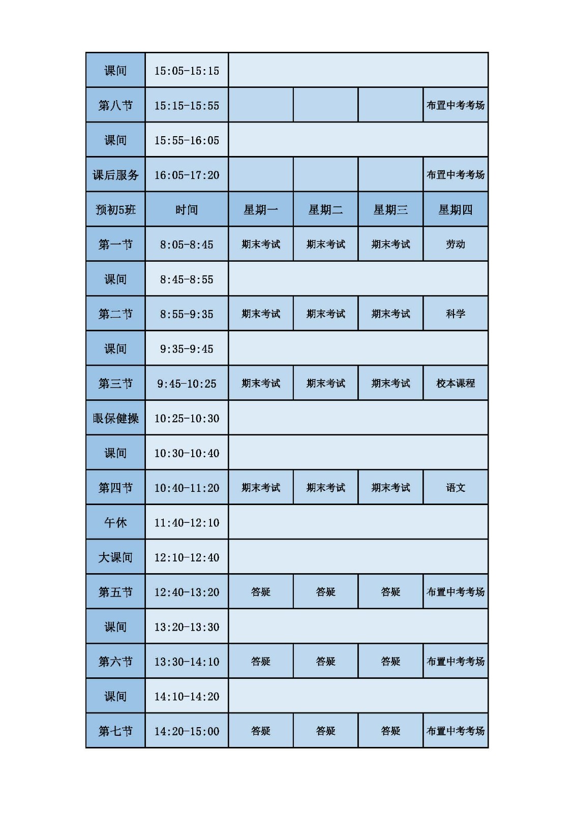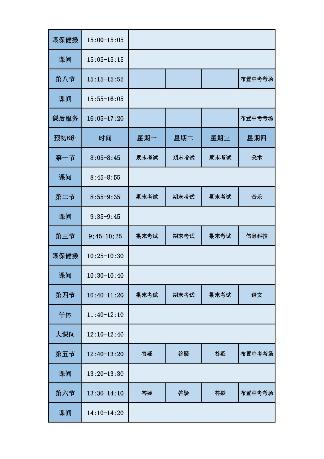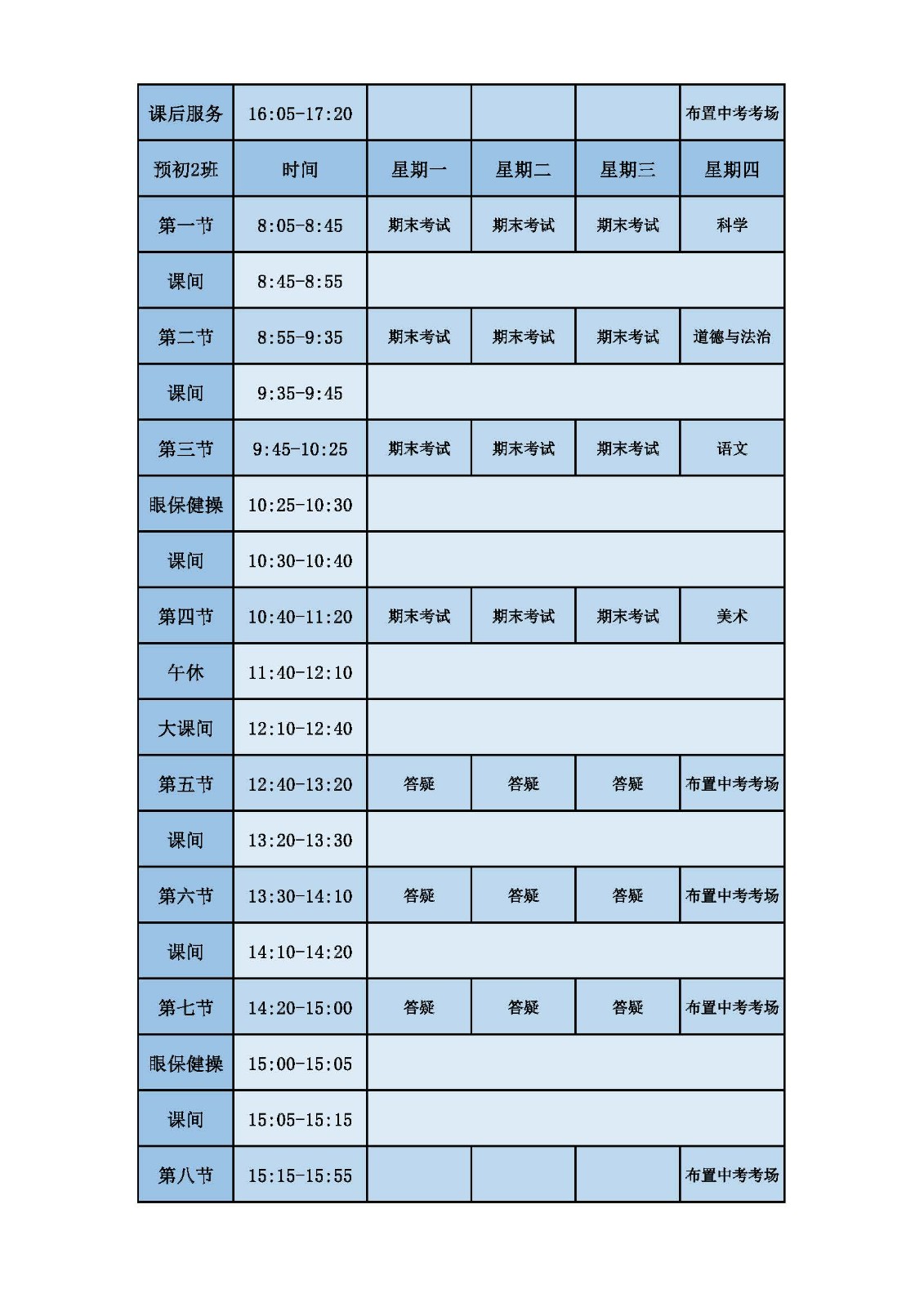 2025学年第二学期第十六周课表