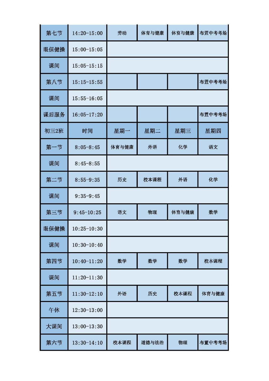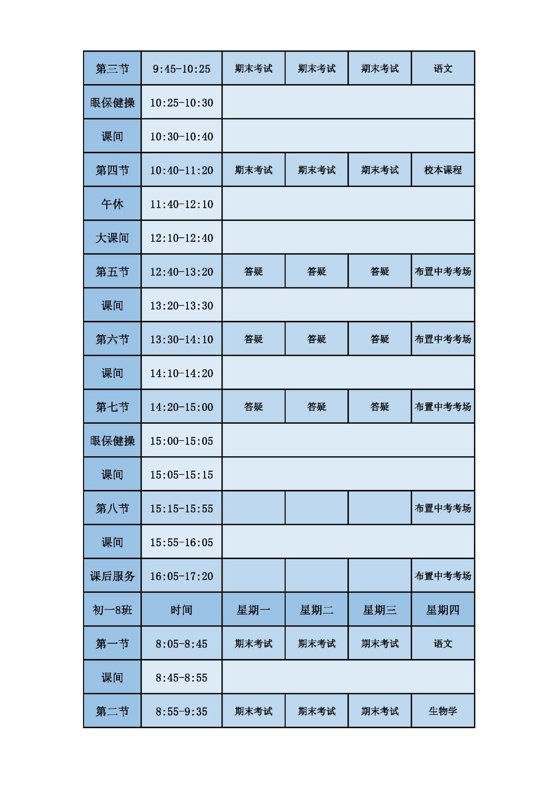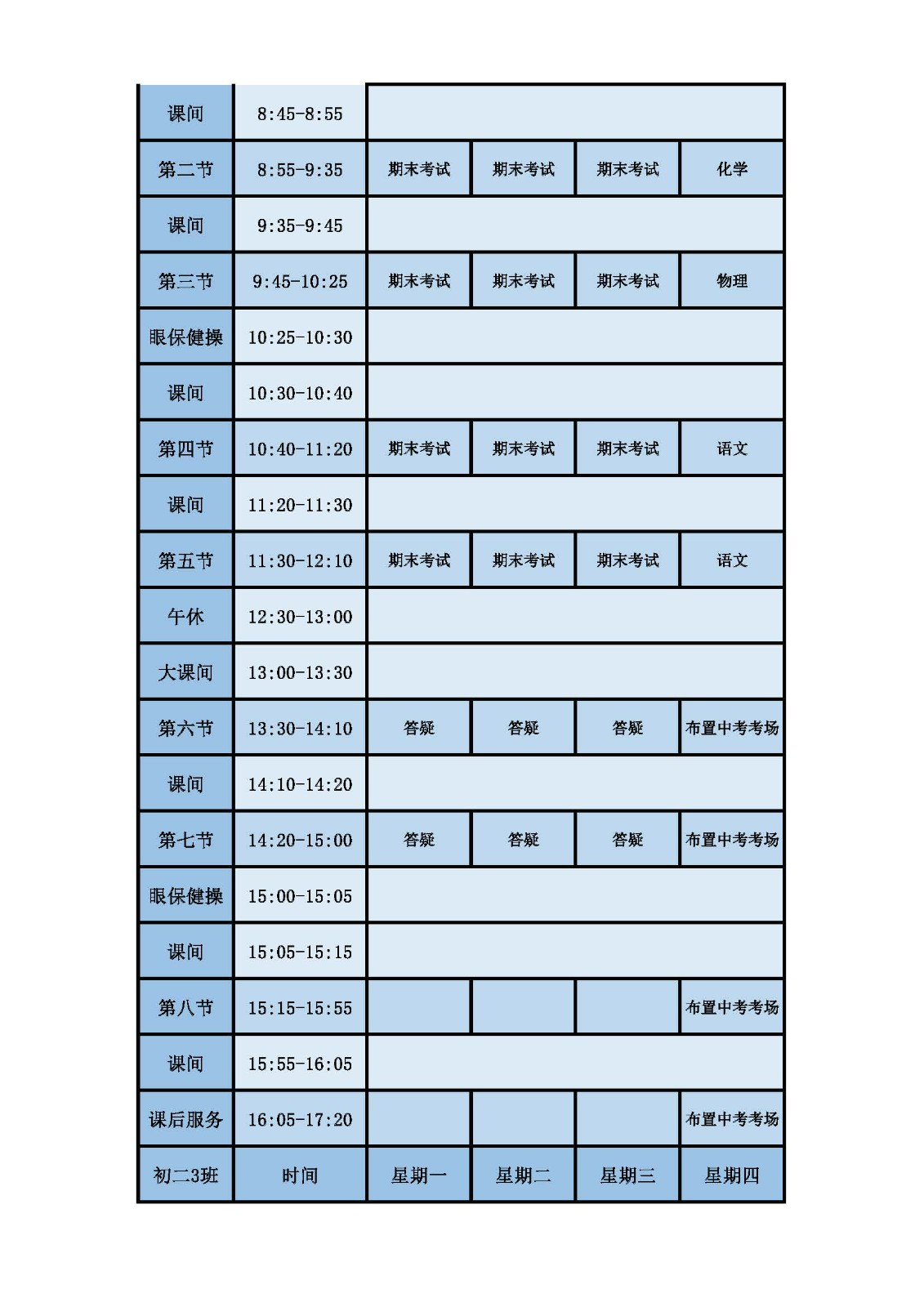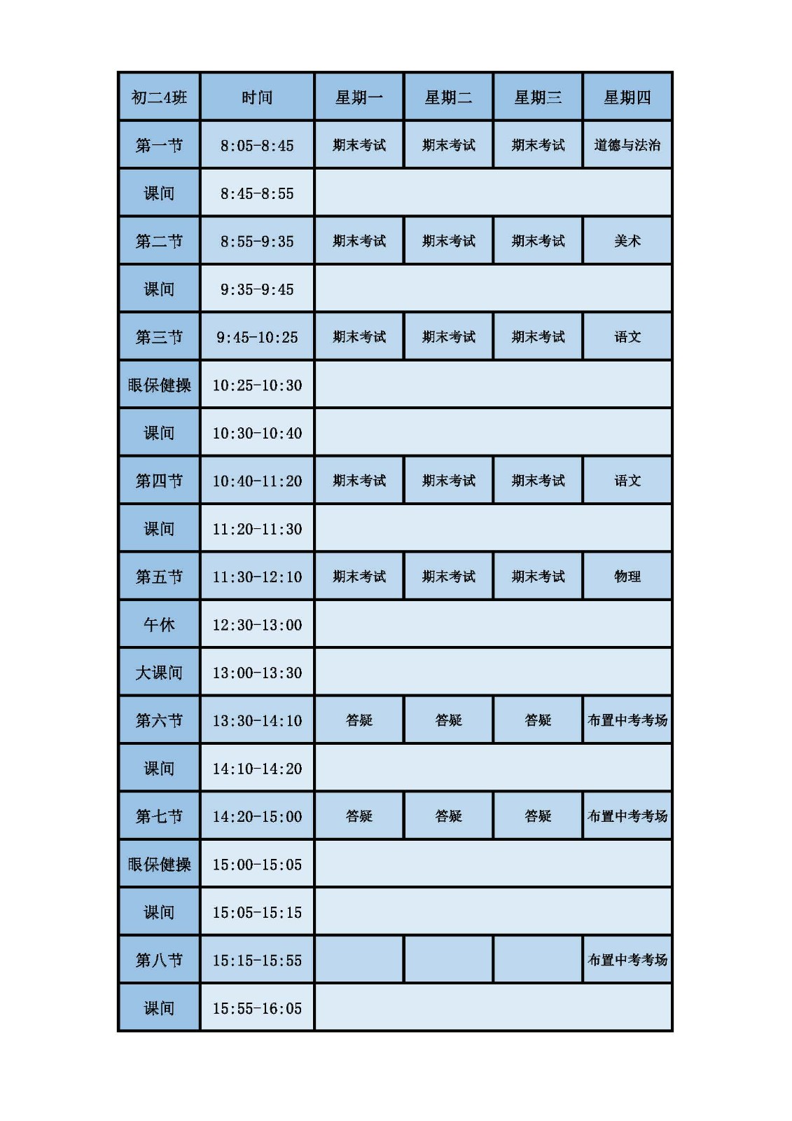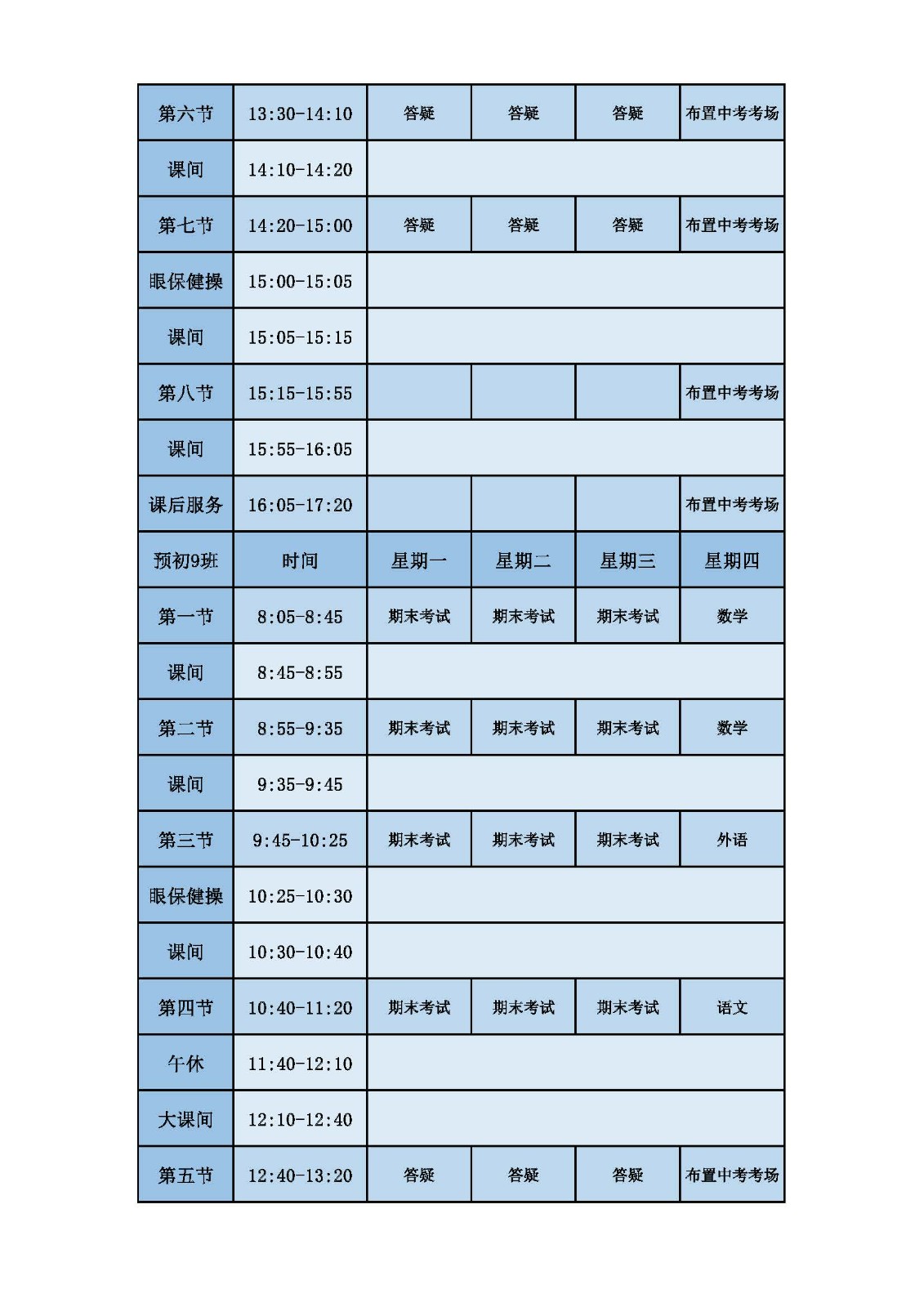 2025学年第二学期第十六周课表