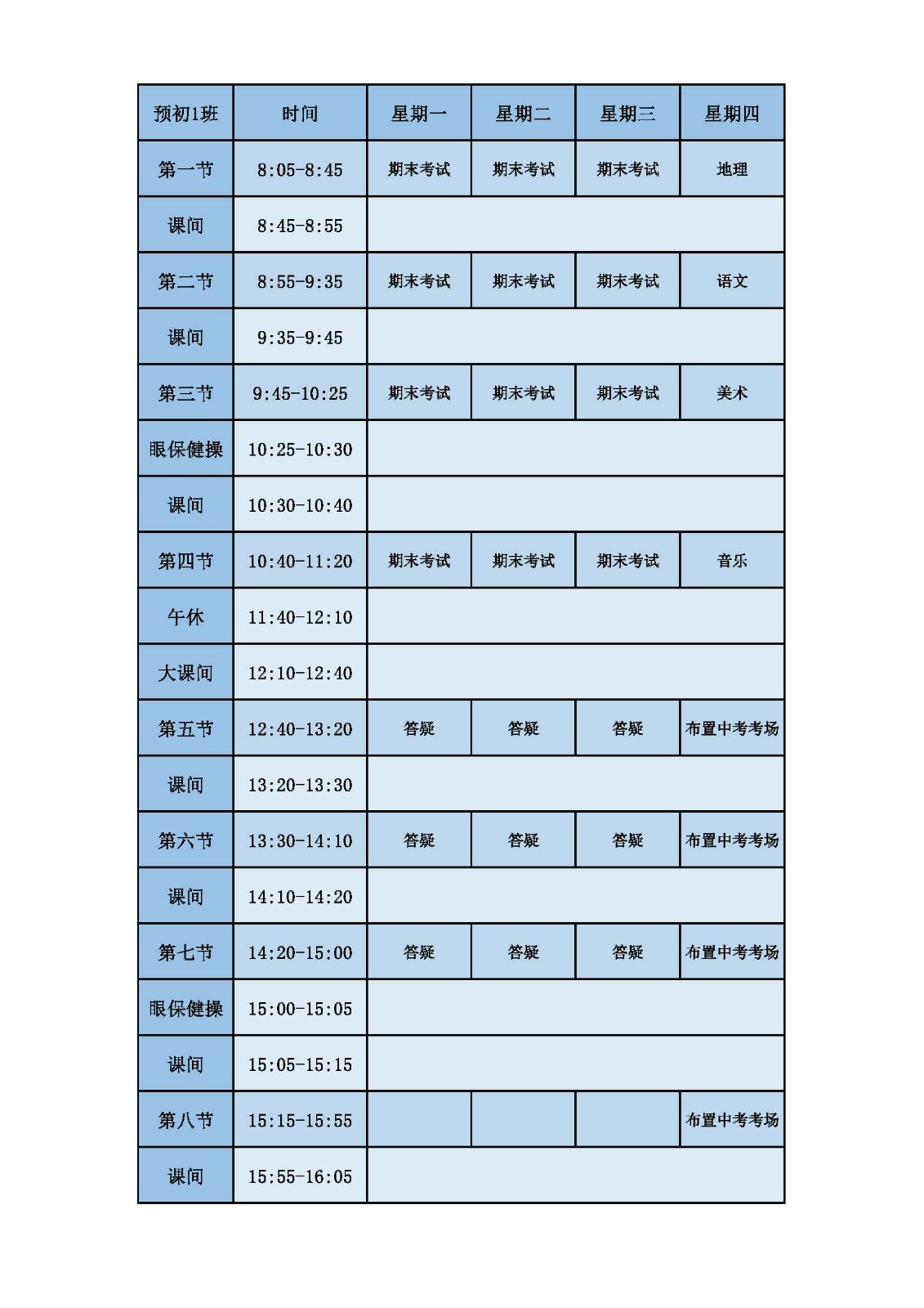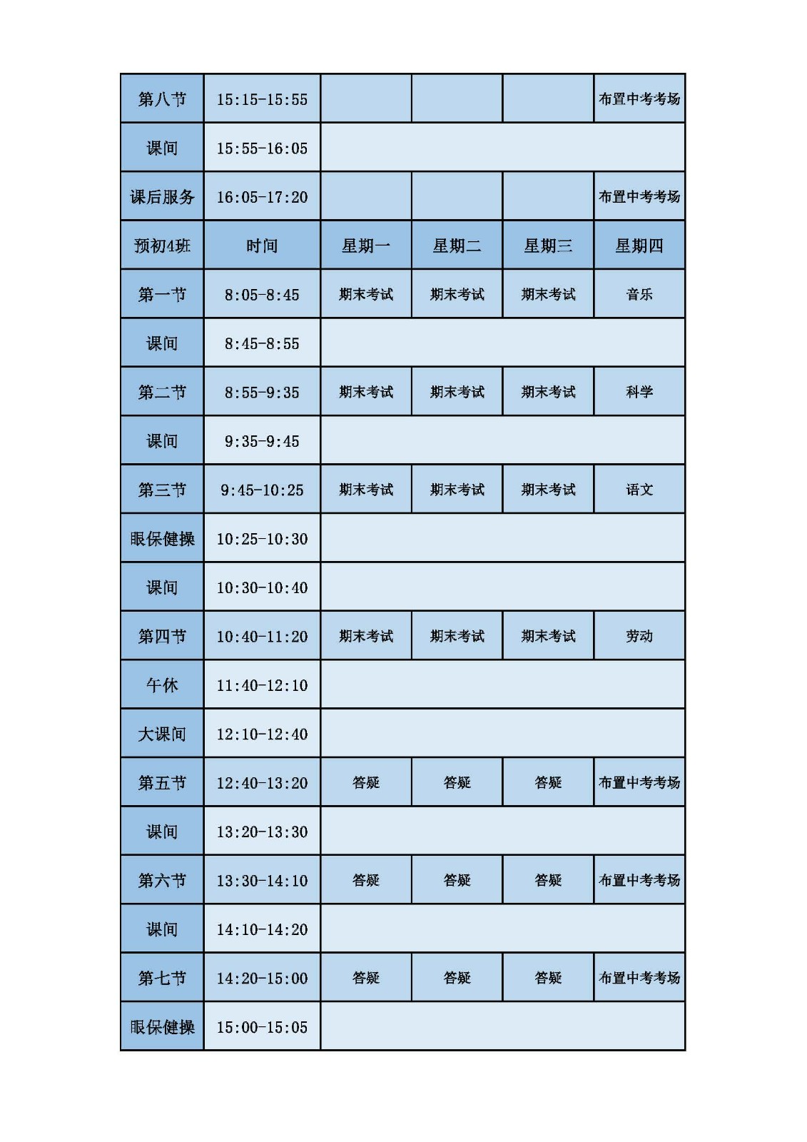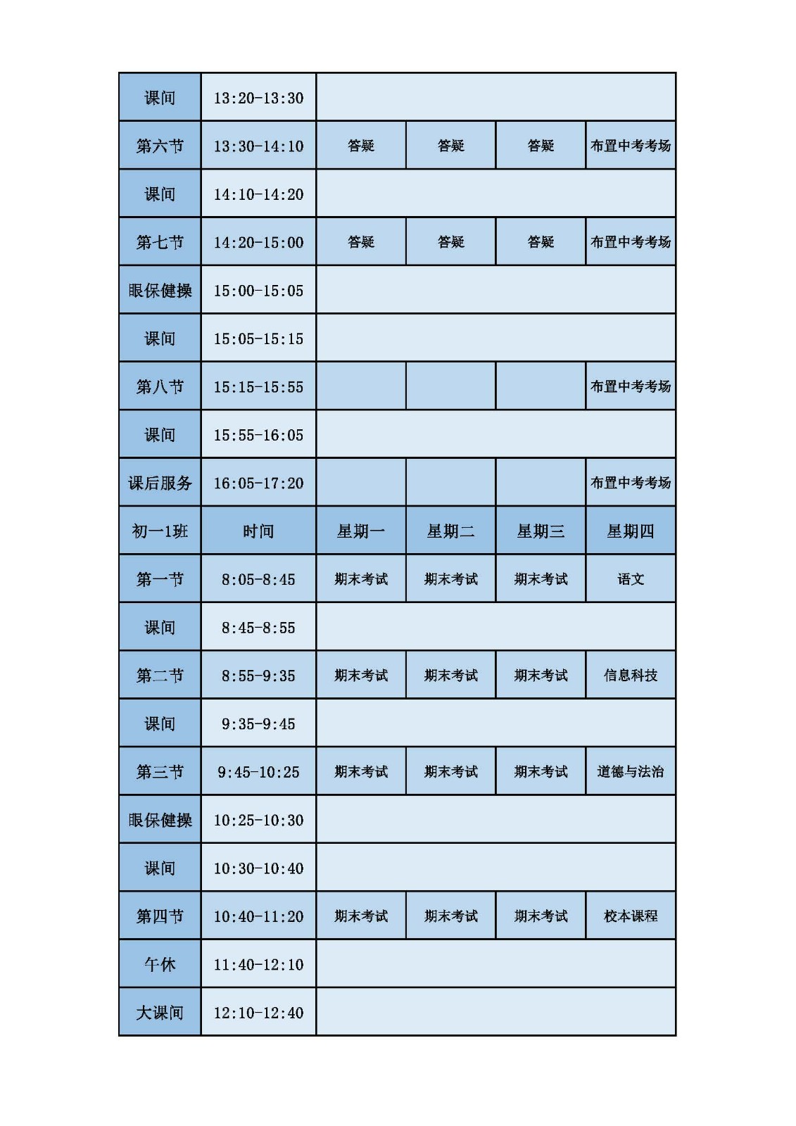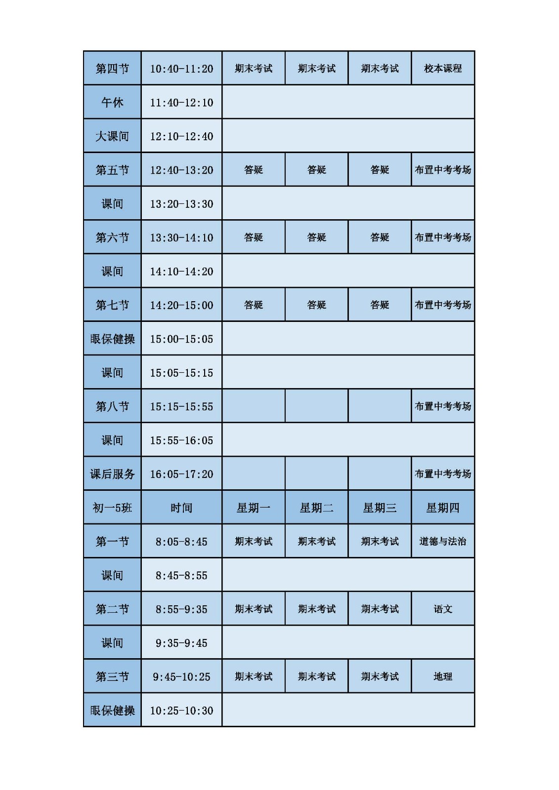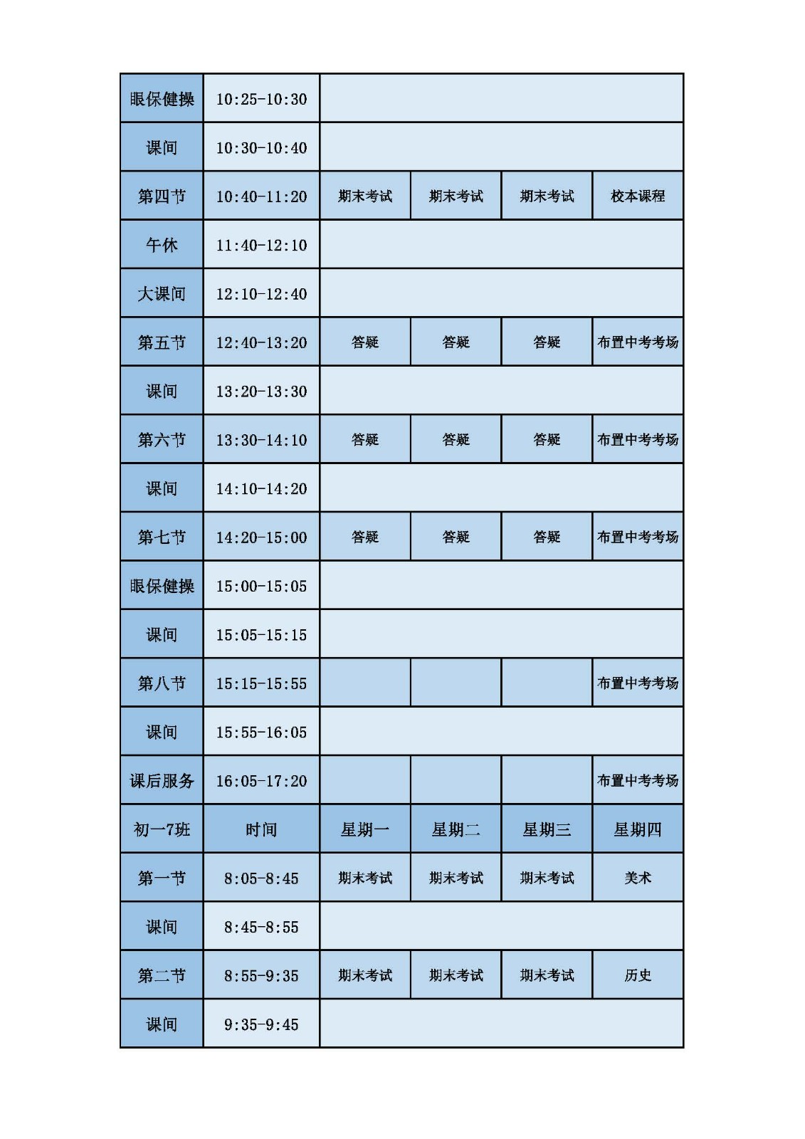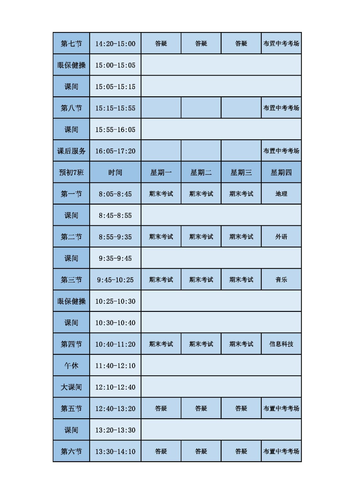 2025学年第二学期第十六周课表