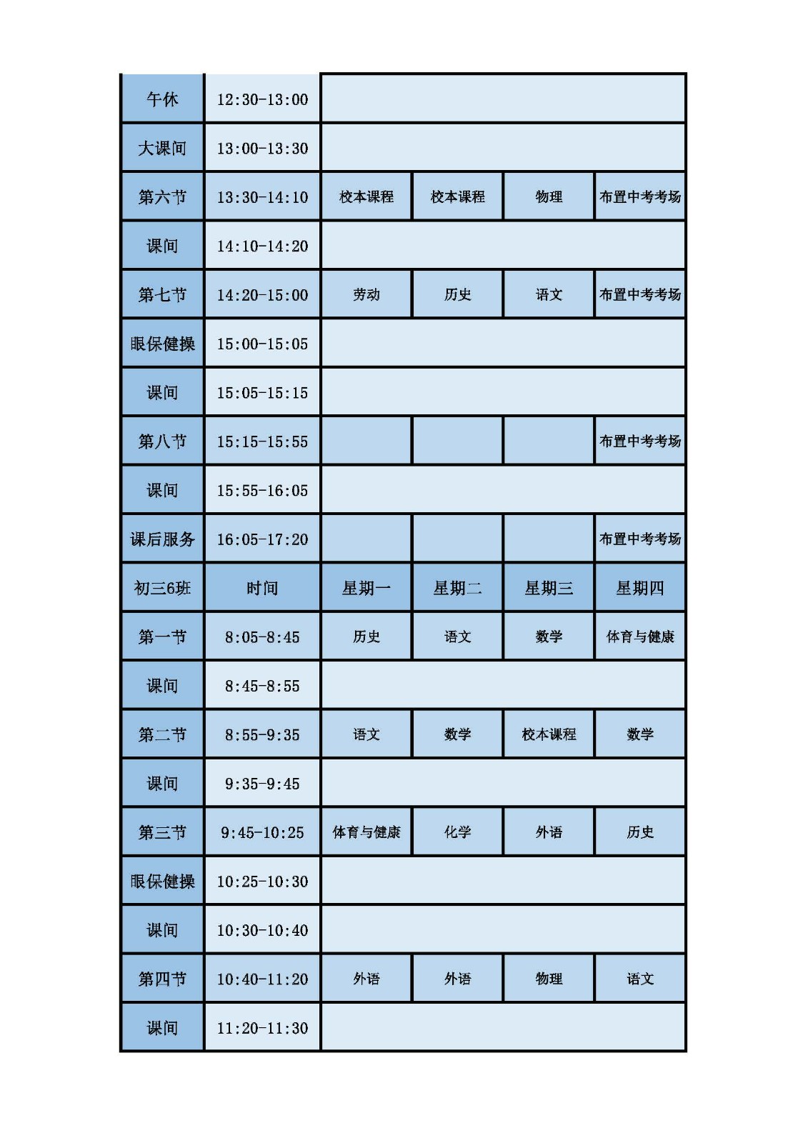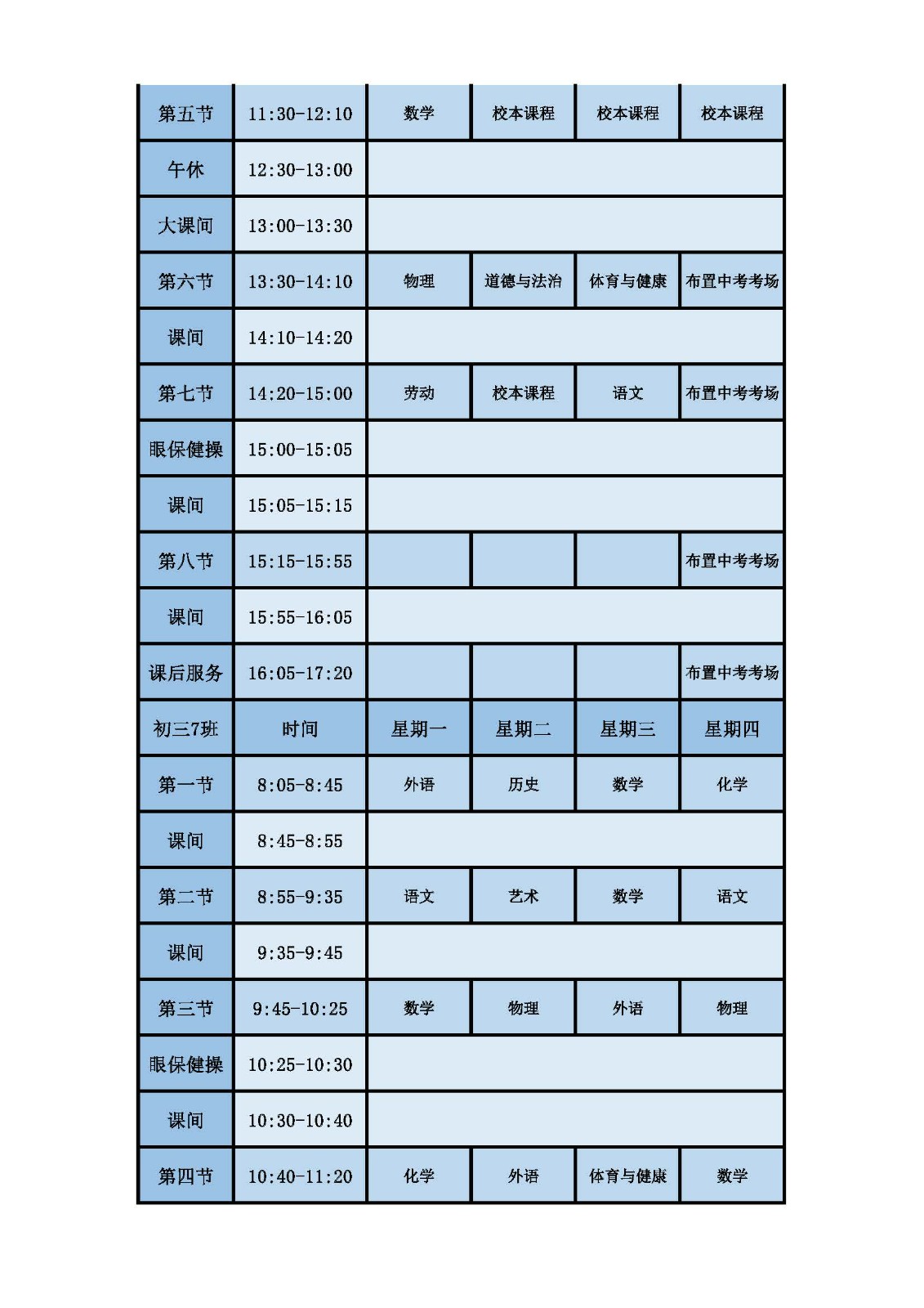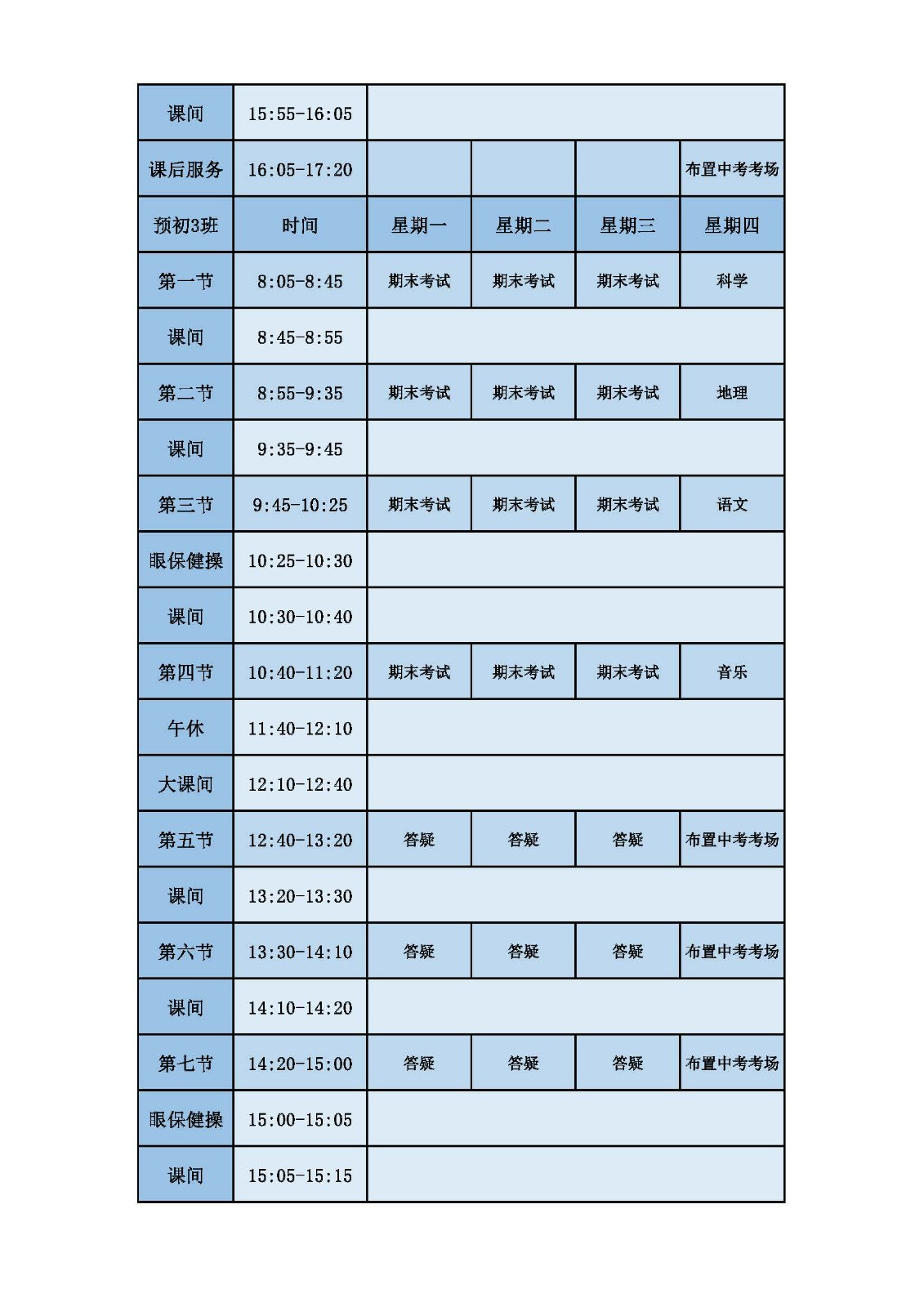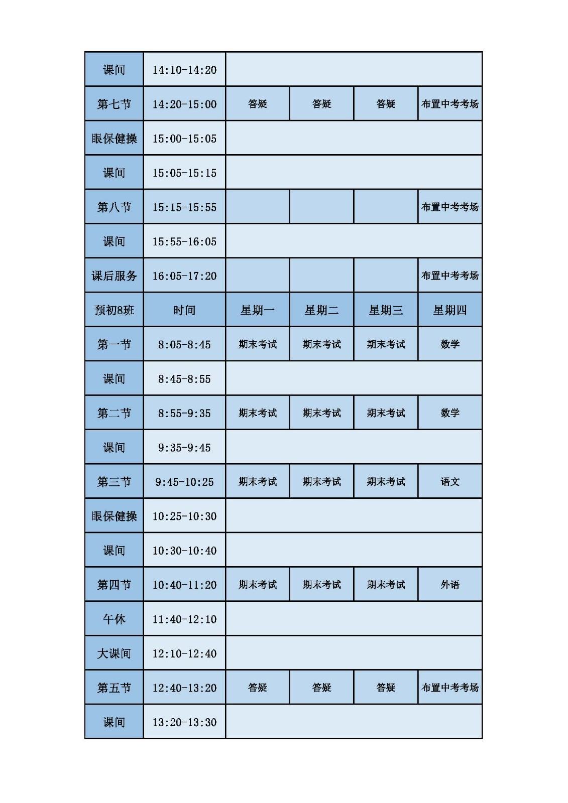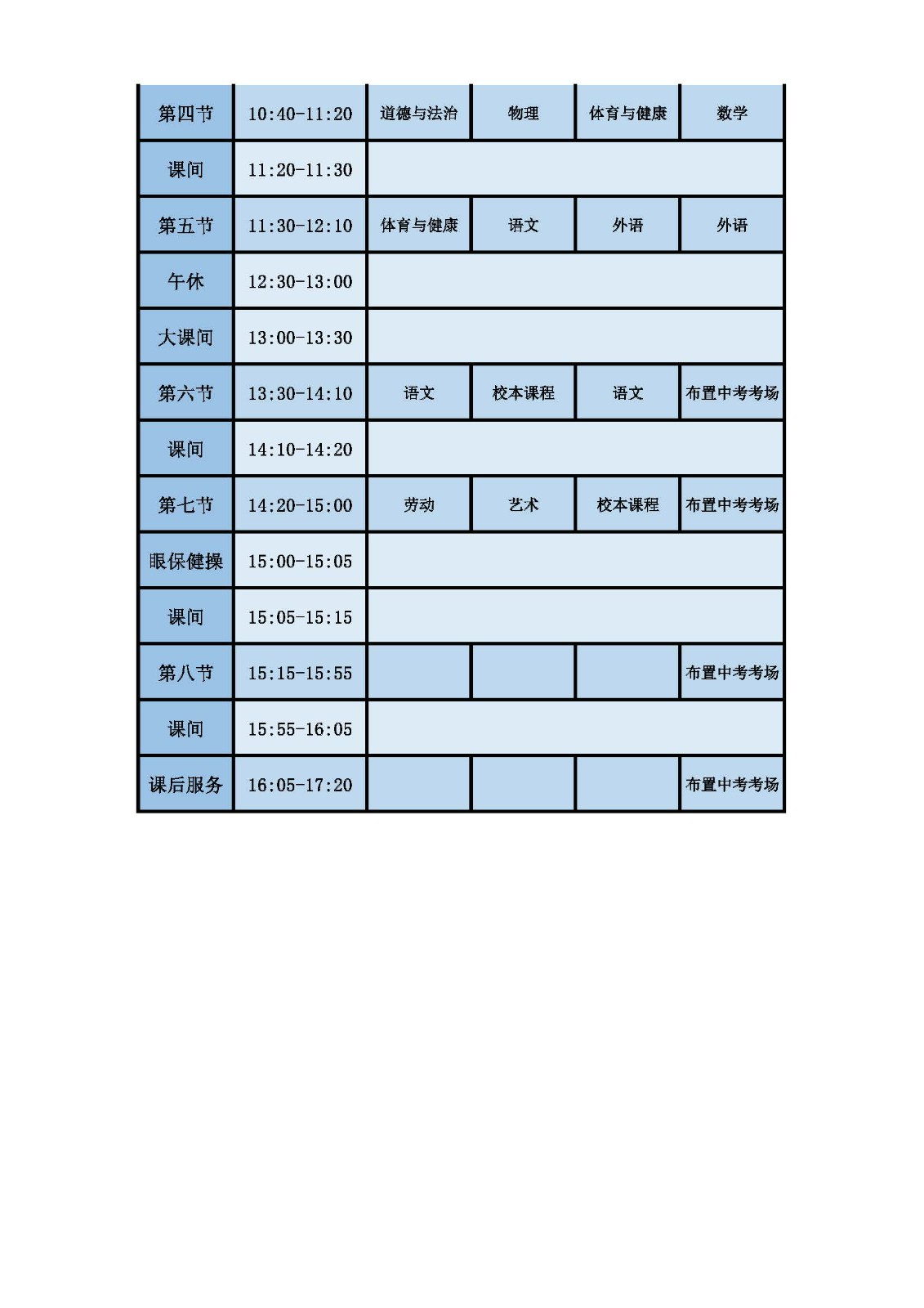 2025学年第二学期第十六周课表