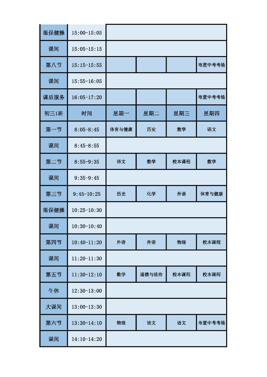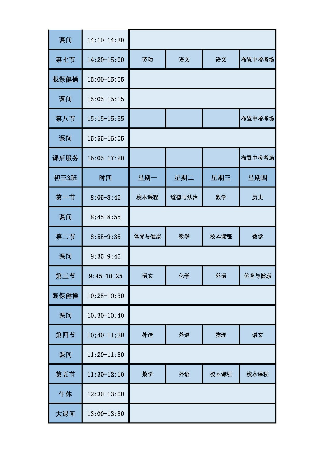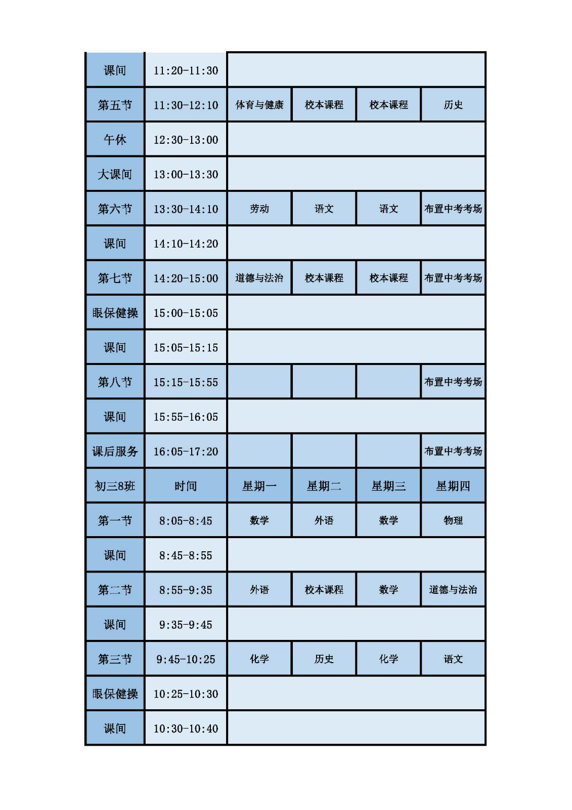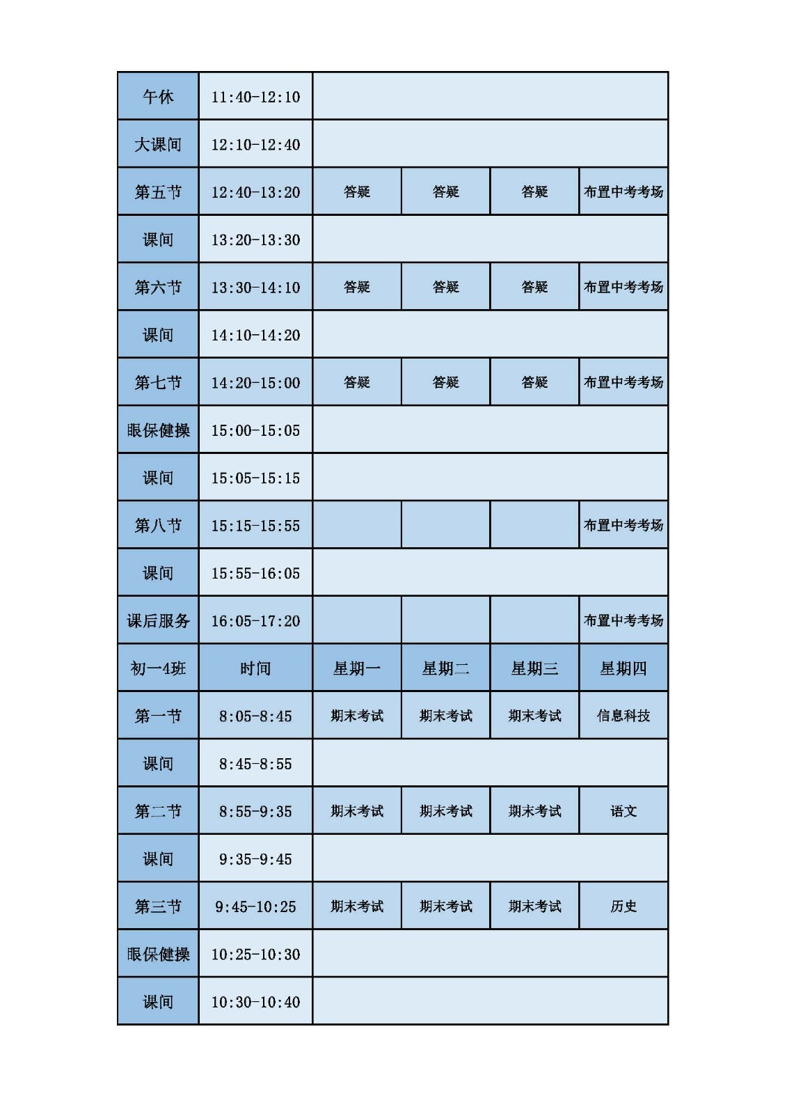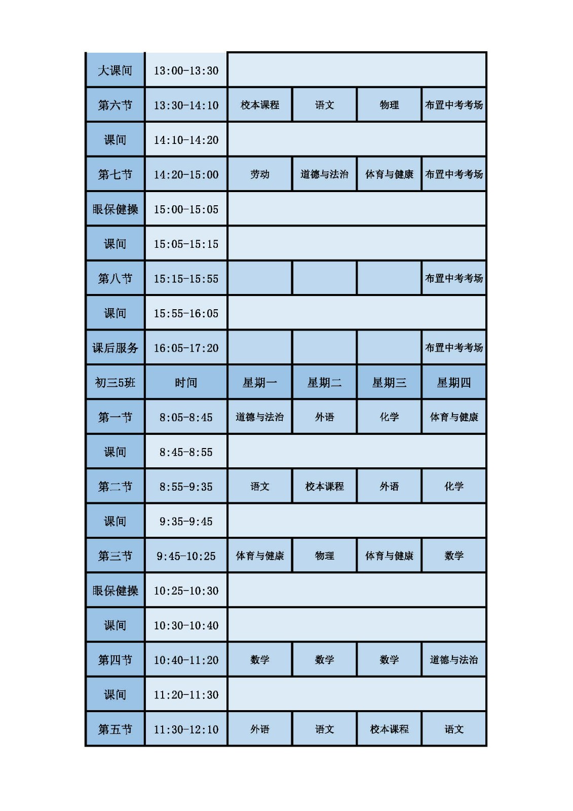 2025学年第二学期第十六周课表